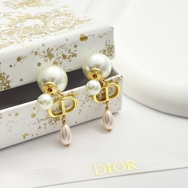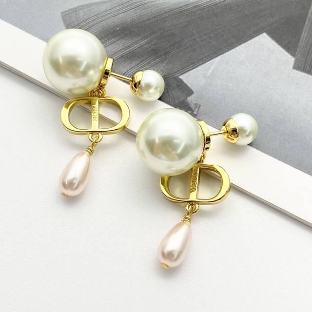 Code E2805 Dior earrings, hot-selling new arrival! Dior double pearl Cd pendant
