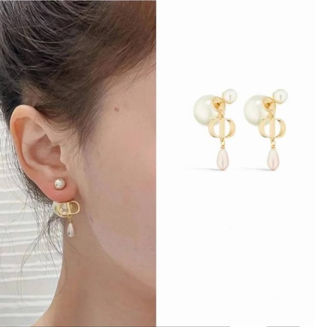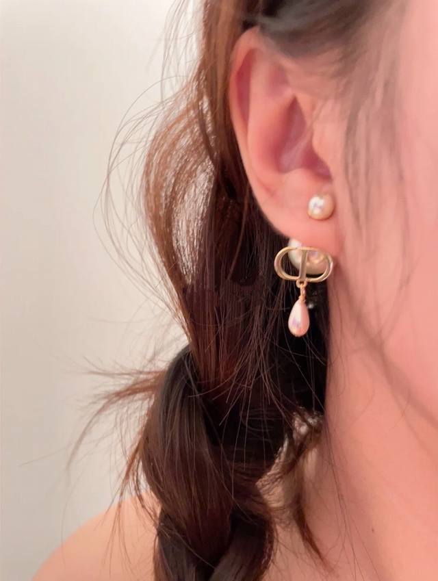 Code E2805 Dior earrings, hot-selling new arrival! Dior double pearl Cd pendant earrings. The classic Dior Cd logo paired with pink teardrop pearls, a perfect touch. Super elegant petit pearl earrings, absolutely gorgeous! A universally flattering style! Super gentle, elegant, and sophisticated.