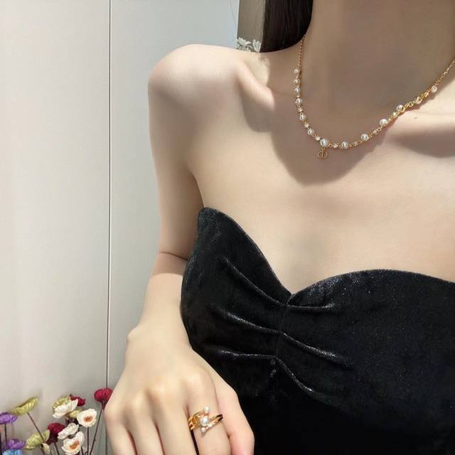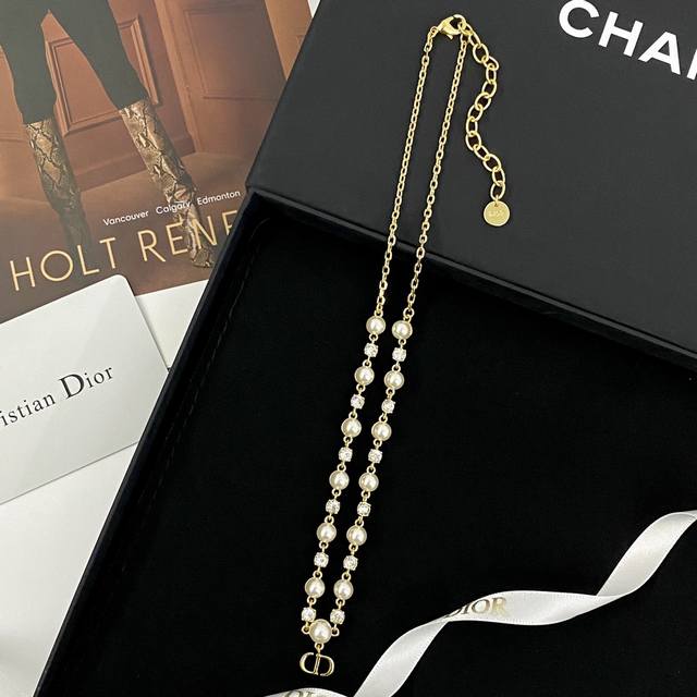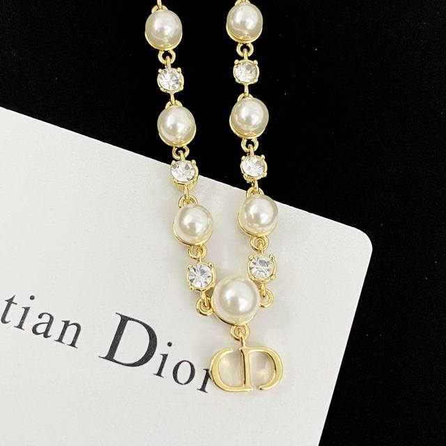 Code N832 Dior Necklace Hot Selling Item New Arrival! Dior Crystal Pearl Cd Necklace. An elegant and charming necklace that will make you the center of attention! The interplay of pearls and crystals adds a touch of sophistication, showcasing your unique style. The Cd letter pendant around your neck exudes the brand's noble elegance. The perfect collision of pearl elegance and metallic texture creates a princess-like feel. Whether paired with a dress or casual wear, it showcases different styles. Let this necklace be the finishing touch to your fashion, radiating your unique charm!