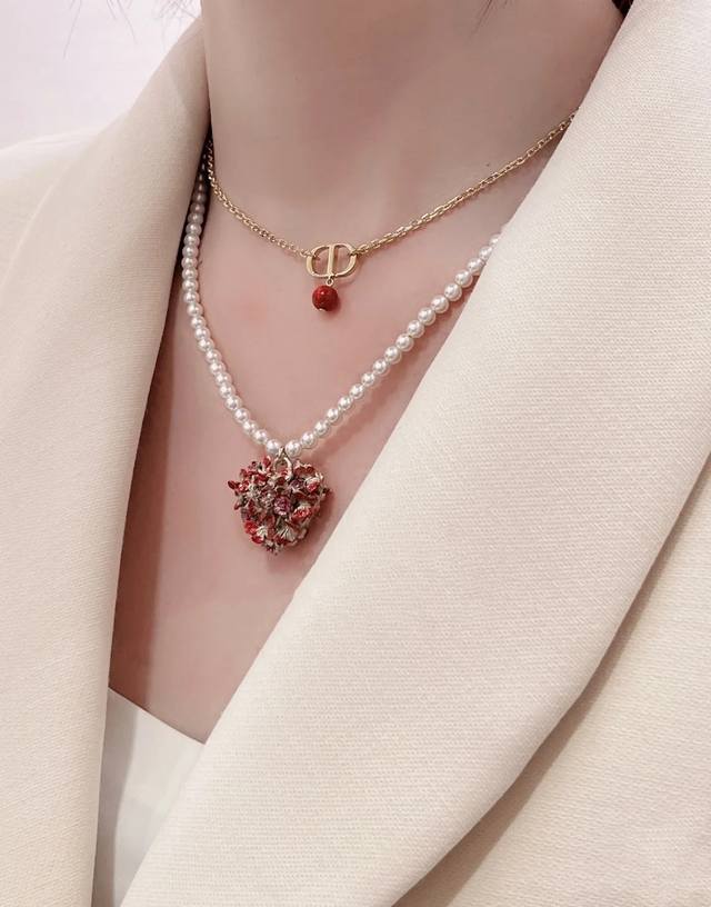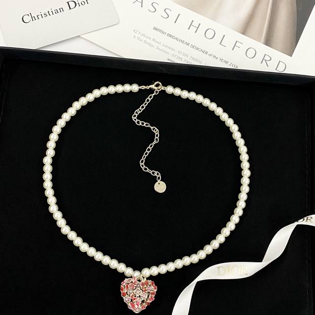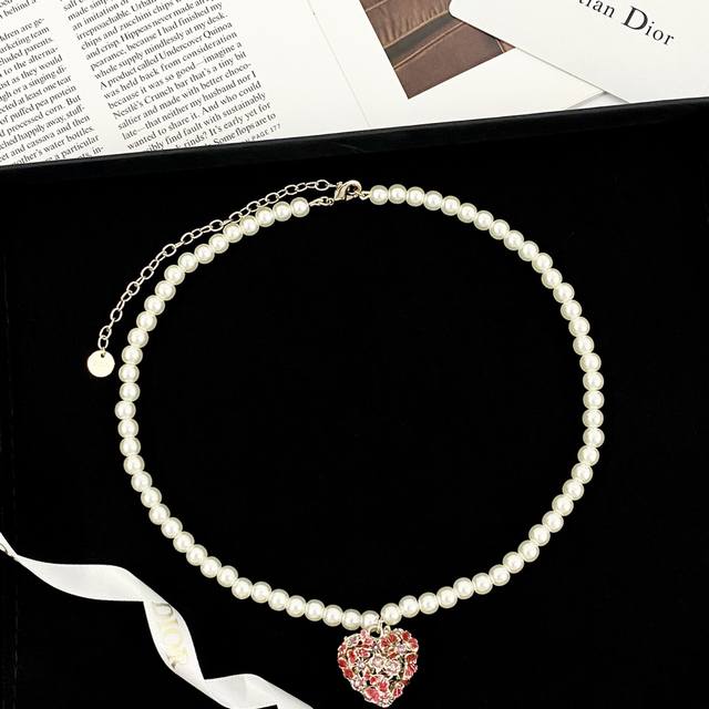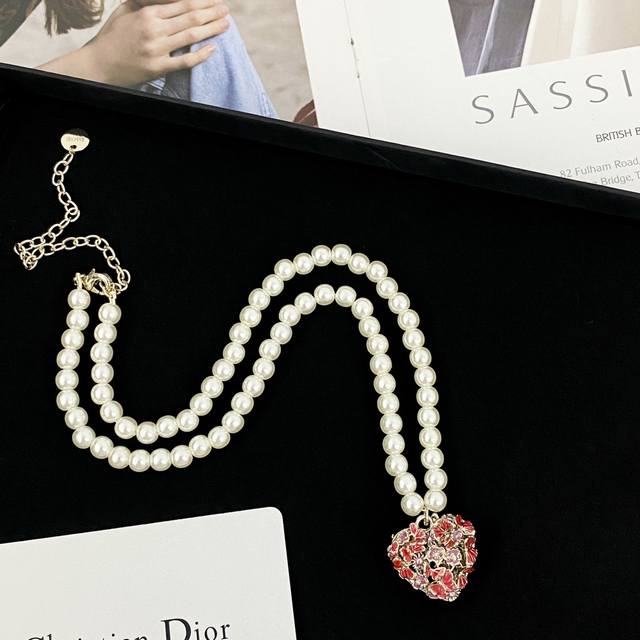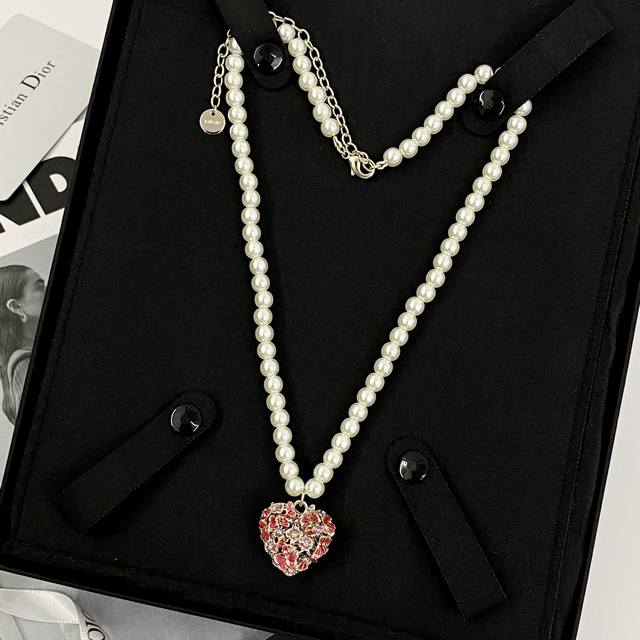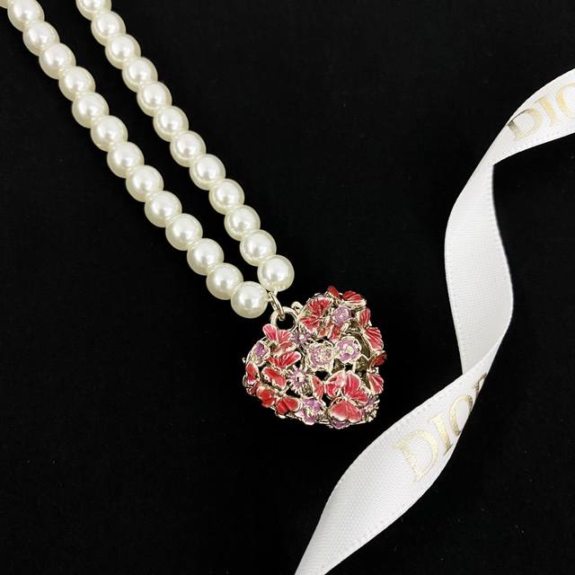 Code N848 0267825 Dior Necklace Hot Selling Item New Arrival! Dior Openwork Embossed Heart Pearl Necklace. The heart shape is composed of openwork butterflies and flowers. The hand-painted bud details on each butterfly and flower are so beautiful and exquisite, stunning at first glance. It's as beautiful as an oil painting, rich in color and luxurious! Combined with pearl elements, it exudes a wealthy heiress vibe. The abundant floral beauty is truly festive and vibrant.