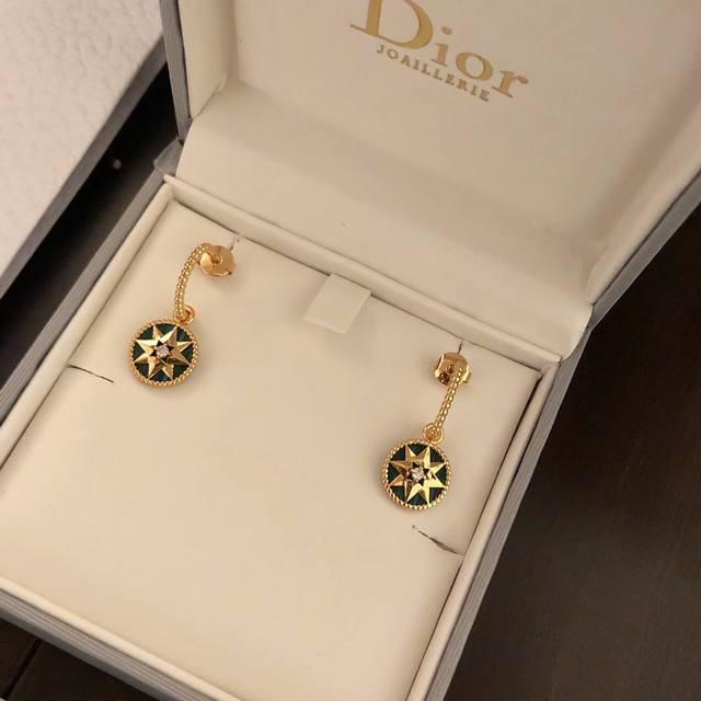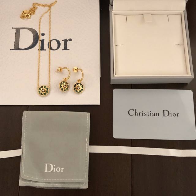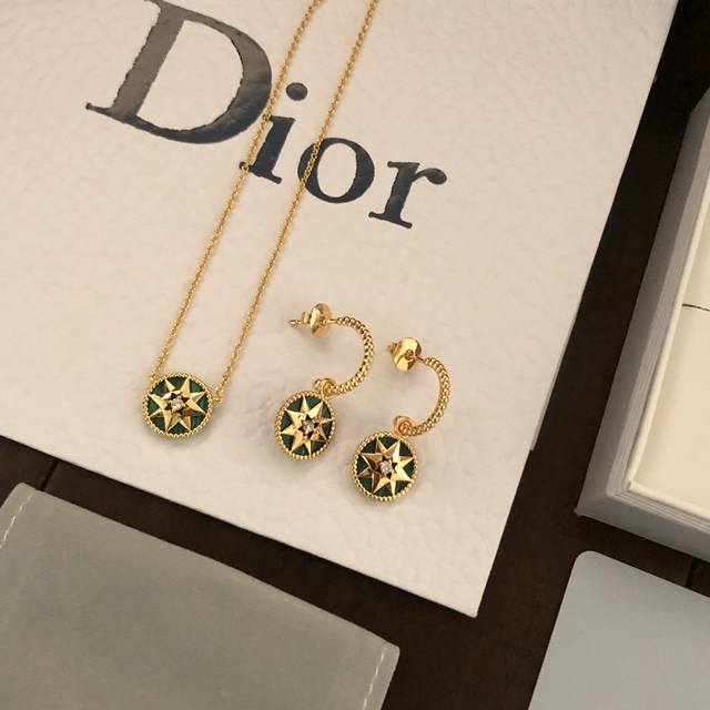 Dior Compass Necklace and Earring Set, a hot new arrival from the boutique. This Dior necklace is reversible and a celebrity favorite. The Victoire De Castellane design reinterprets Mr. Dior's lucky star