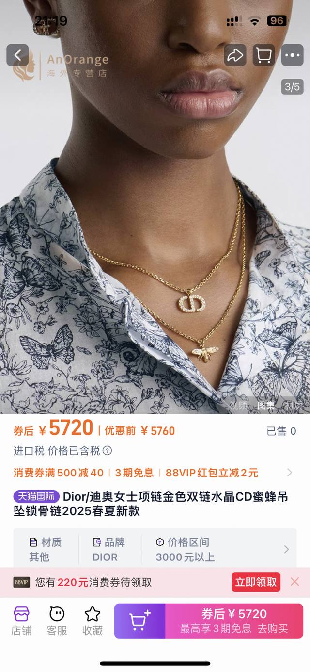 Dior Double Bee Necklace, New Arrival at Boutique! Absolutely stunning and romantic, a must-have for everyone! A hot item on Xiaohongshu (Little Red Book)