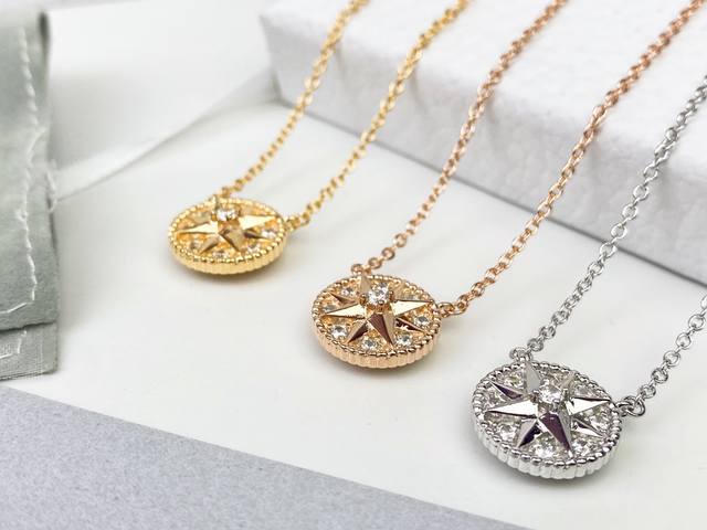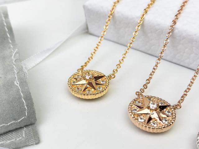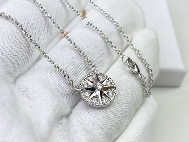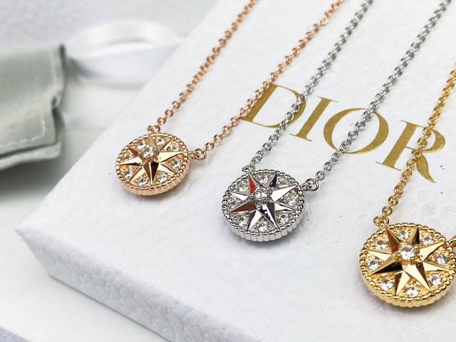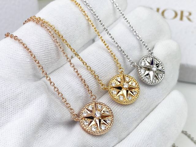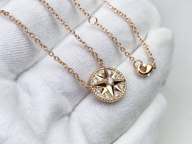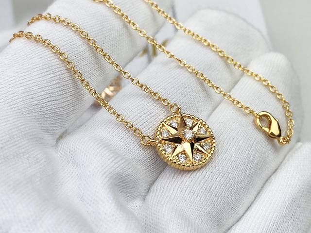 Dior full diamond compass necklace Lucky Star - Eight-pointed star can be worn on both sides. Popular with major influencers and celebrities. 18K gold electroplated craft batch necklace
