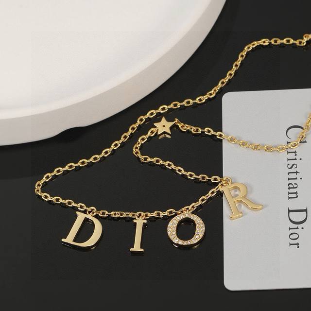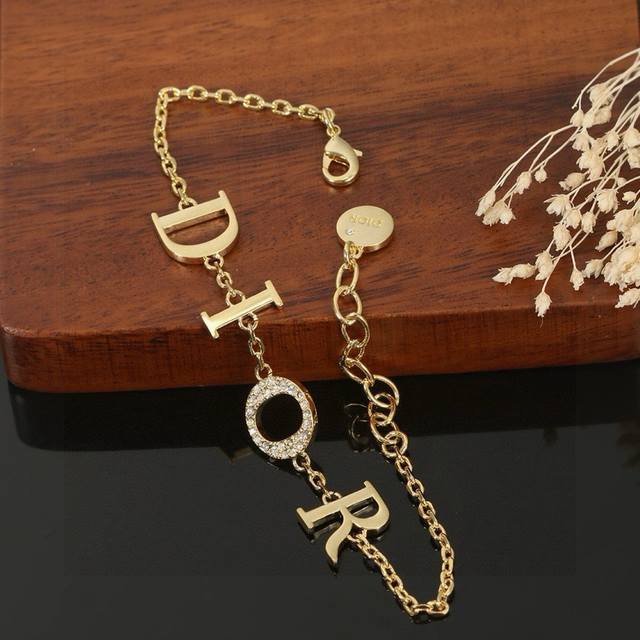 Dior Jadior letter necklace bracelet uses gold as the main color, with letters and five-pointed stars, adding a cute touch. The retro style of the jewelry is very pleasing, and it will not look particularly dull when paired with the pendant. Gold jewelry is particularly white when worn on the body. Bracelet necklace