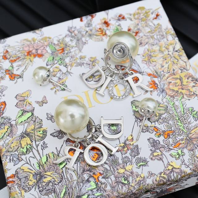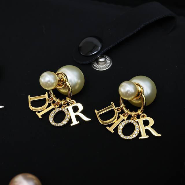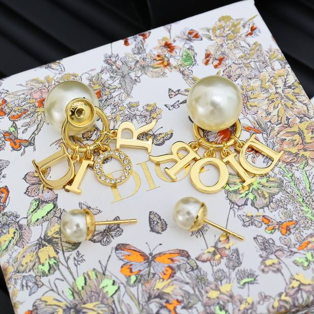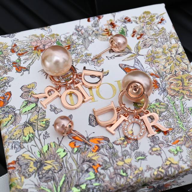 Dior letter pearl earrings