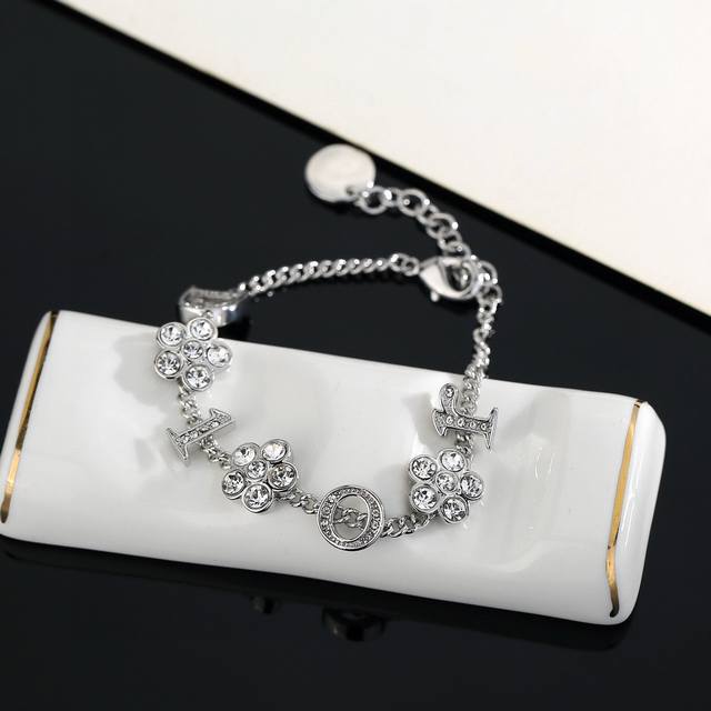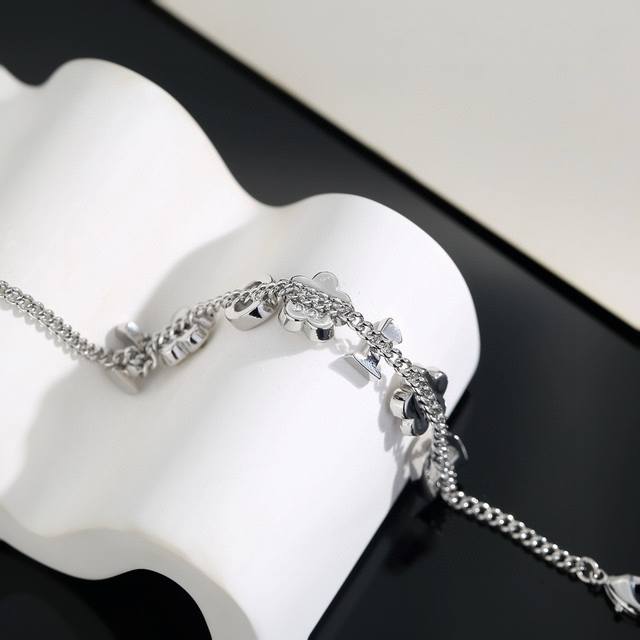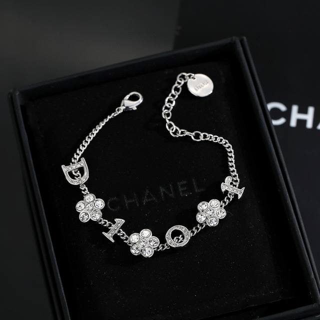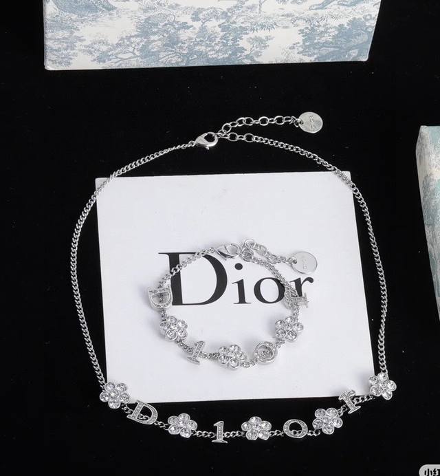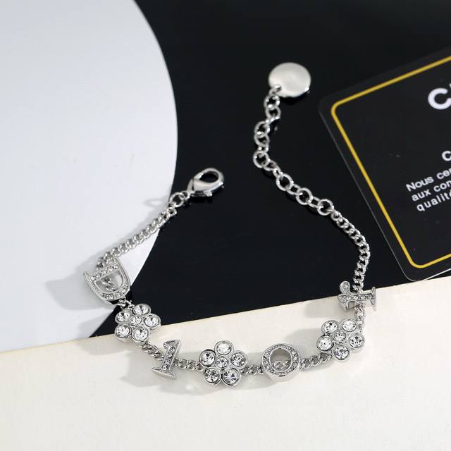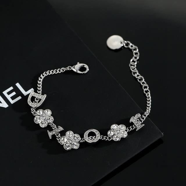 Dior monogram and flower necklace/bracelet. The simple design is undeniably stylish, with a perfect blend of elegant diamonds and metallic texture, showcasing a high-end aesthetic. (Bracelet