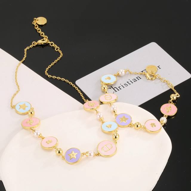 Dior Multi-Element Necklace and Bracelet (DDD) This bracelet uses vintage gold as its main color, with lettering adding a touch of cuteness. The vintage style of the jewelry is very appealing, and the combination with the pendant avoids looking too dull. Gold jewelry is particularly flattering and makes the skin appear brighter. Bracelet/Necklace 80 (DDD)