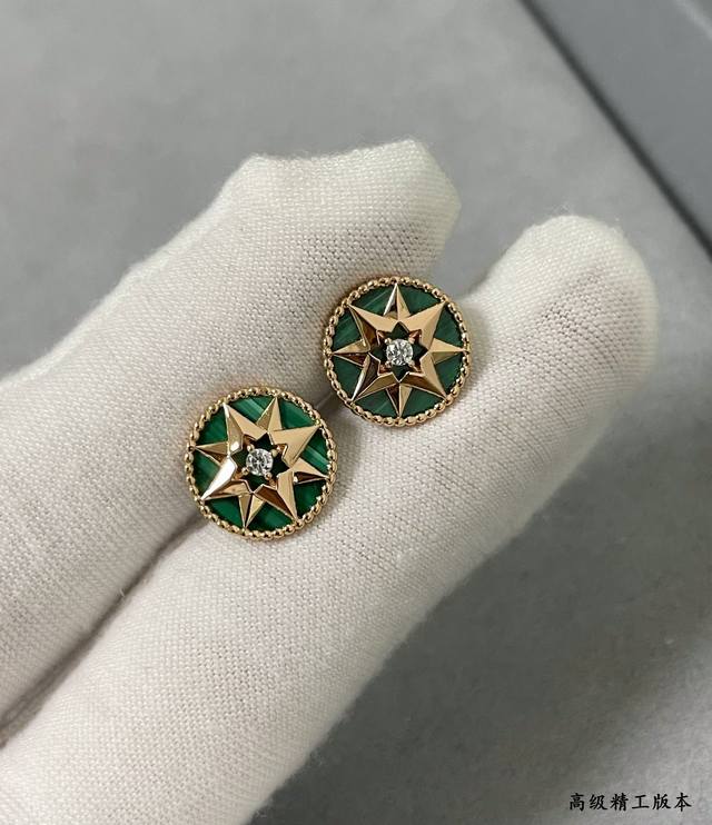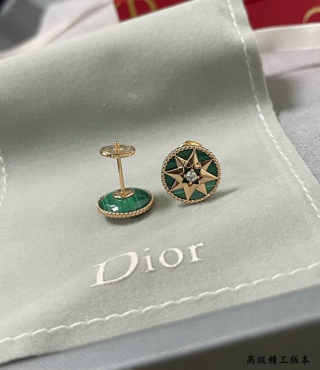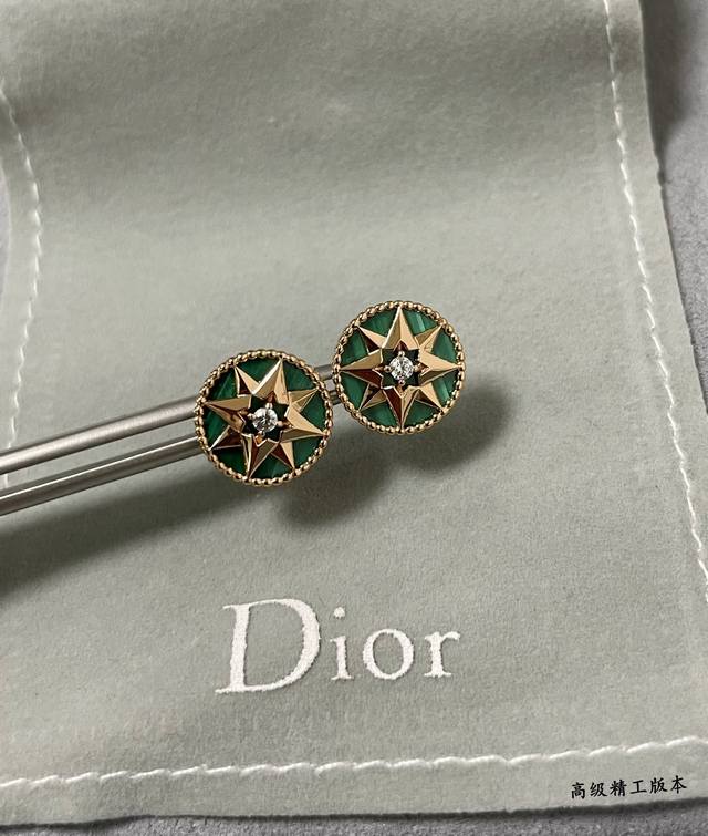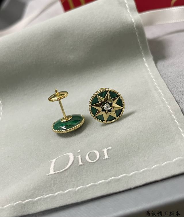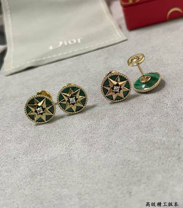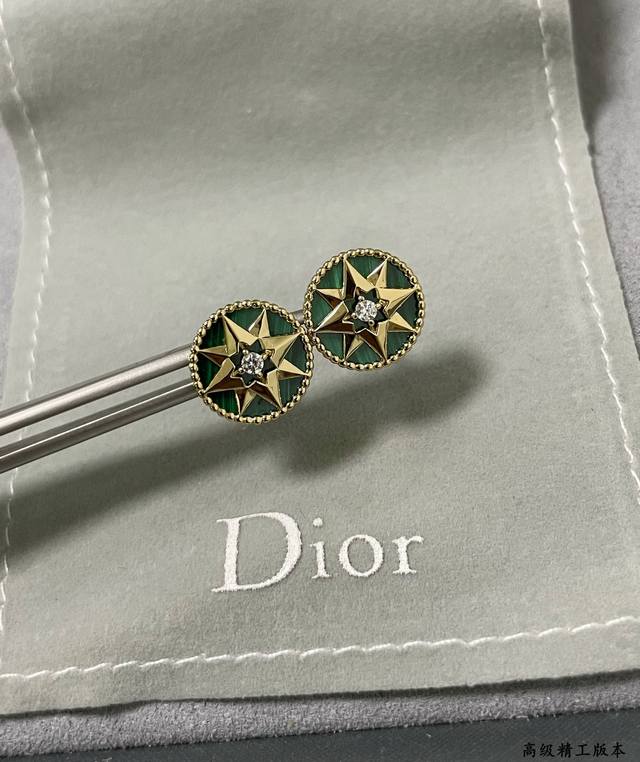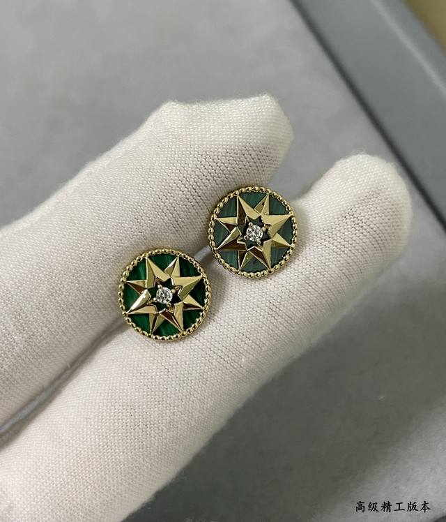 / Dior natural malachite compass earrings double-sided Dijia eight-pointed star br