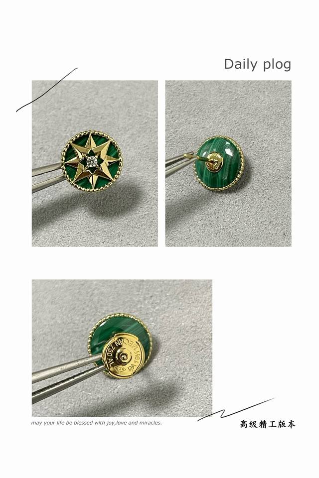 Dior natural malachite compass earrings double-sided Dijia eight-pointed star bracelet necklace earrings ultra-fine luxury jewelry Rose Des Vents compass rose necklace bracelet earrings