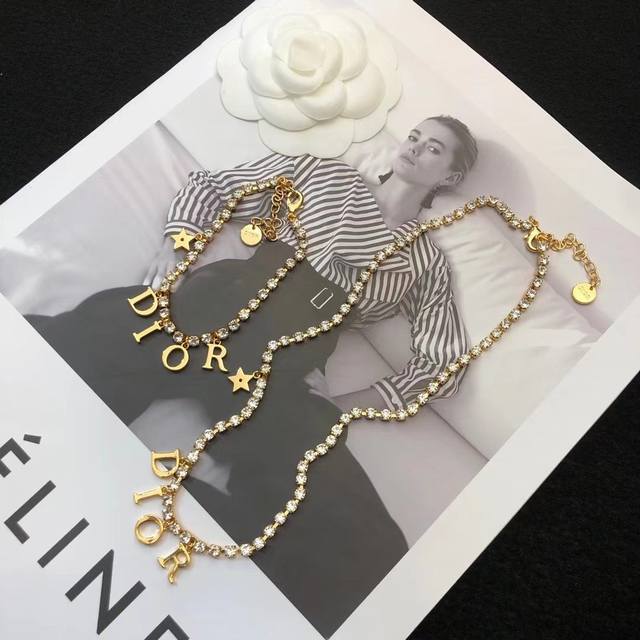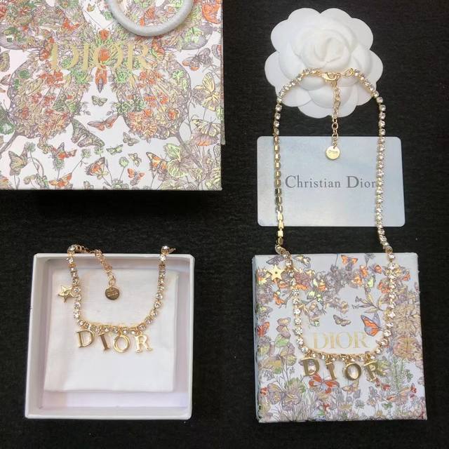 Dior necklace and bracelet, new Dior set loved by top luxury brands. The metallic texture and trendy lettering design are sure to turn heads and are perfect for modern street style and vacation looks, making it the hottest fashion item this summer...