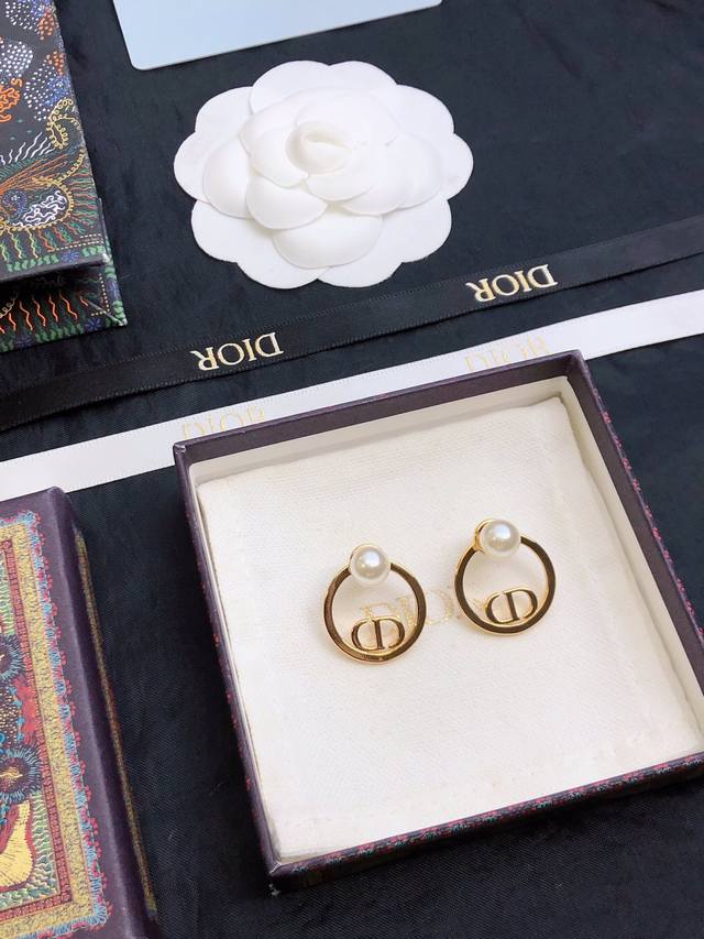 Dior New Dior CD Earrings, identical to those in boutiques, made of brass, a hot-selling item with a unique retro-chic design, a must-have for beautiful women, solid, super high-quality, hypoallergenic.