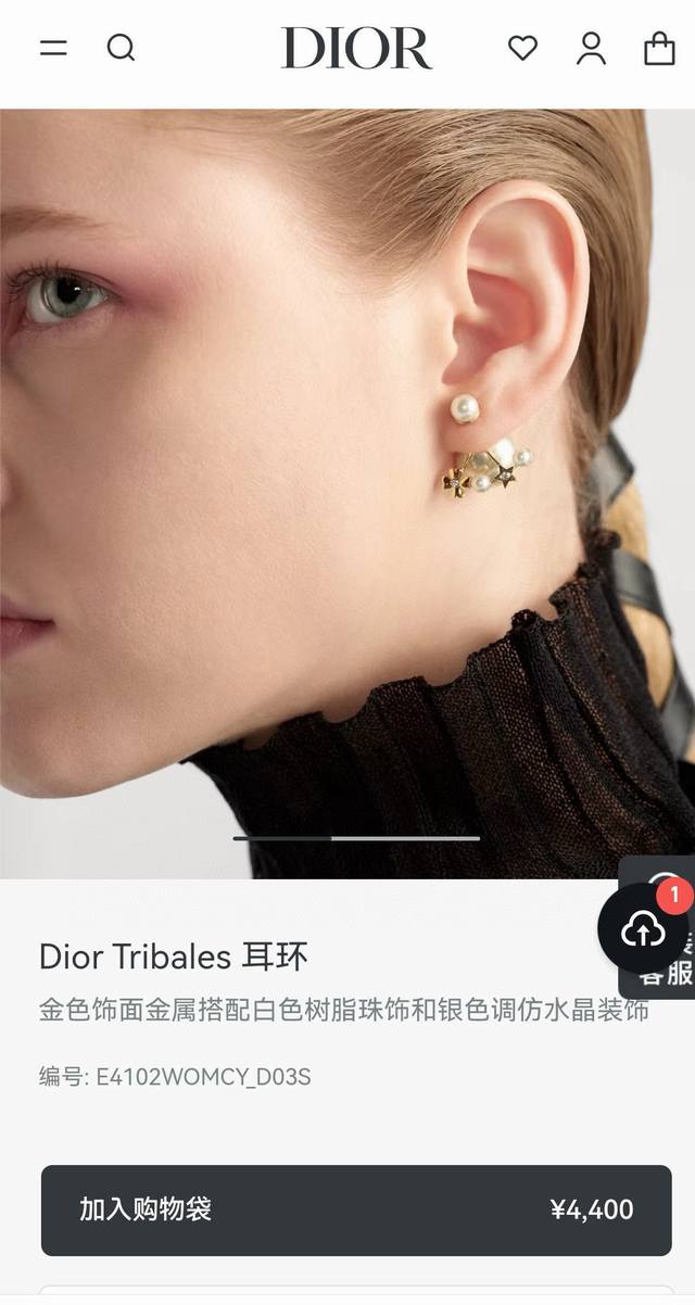 Dior Tribales Earrings. These Dior Tribales earrings offer a fresh take on Dior's iconic design. White resin beads suspend the silver-finished metal letter "DIOR," with the letter "O" set with crystals. These striking earrings can be paired with other styles.