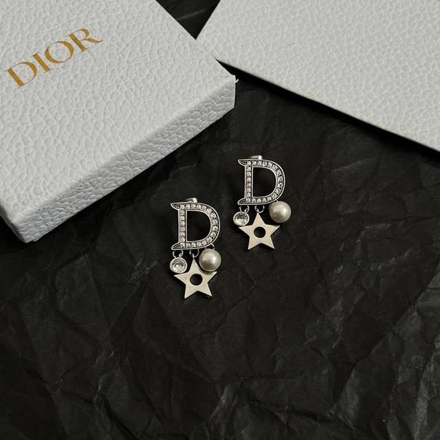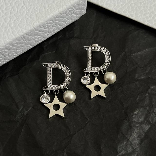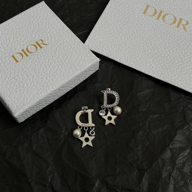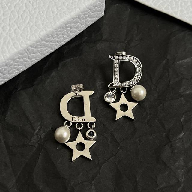 Dior 25 Double Pearl Cd Star Letter Earrings Ethereal And Graceful~ Letter-Shape