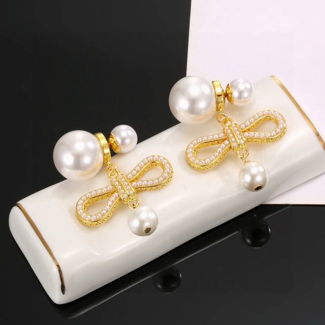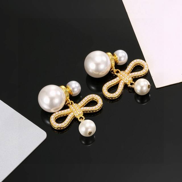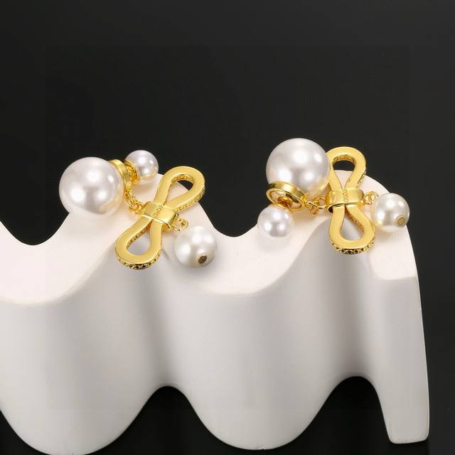 Dior's hot-selling new bow pearl stud earrings are a retro style, not your average product. High-quality craftsmanship, meticulously crafted, 360