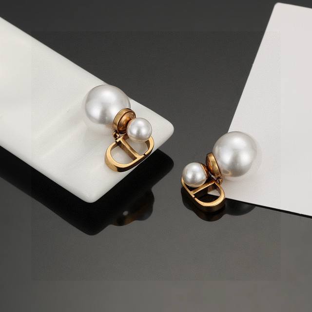 Dior's hot-selling new pearl stud earrings are here! Not your average product, heavily crafted with meticulous attention to detail, showcasing the Dior logo from every angle. Simple and elegant, every detail is flawless, exquisite and delicate workmanship.