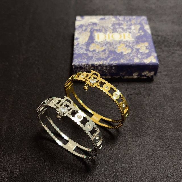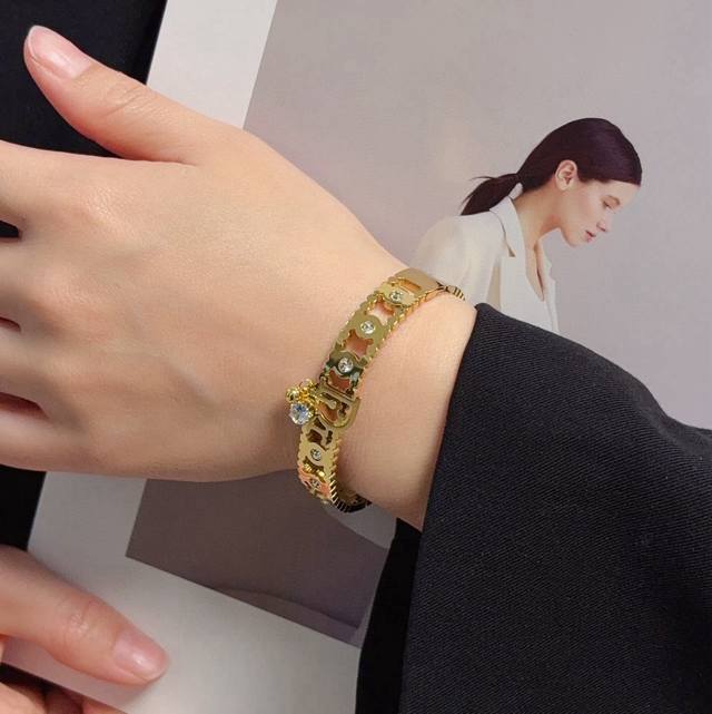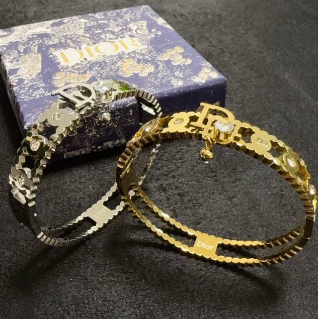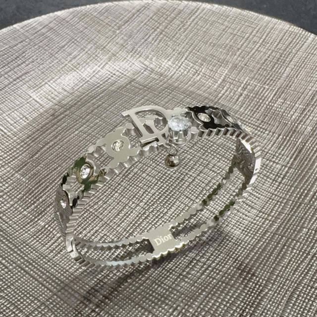 Dior's new beautiful openwork diamond-encrusted bangle is both sweet and edgy. It's a new Dior bangle that looks amazing layered with any style! This new Dior bangle is a recent purchase; it's simple and elegant, with a white gold color that makes your skin look incredibly fair. It looks fantastic layered with your existing bracelets and bangles.