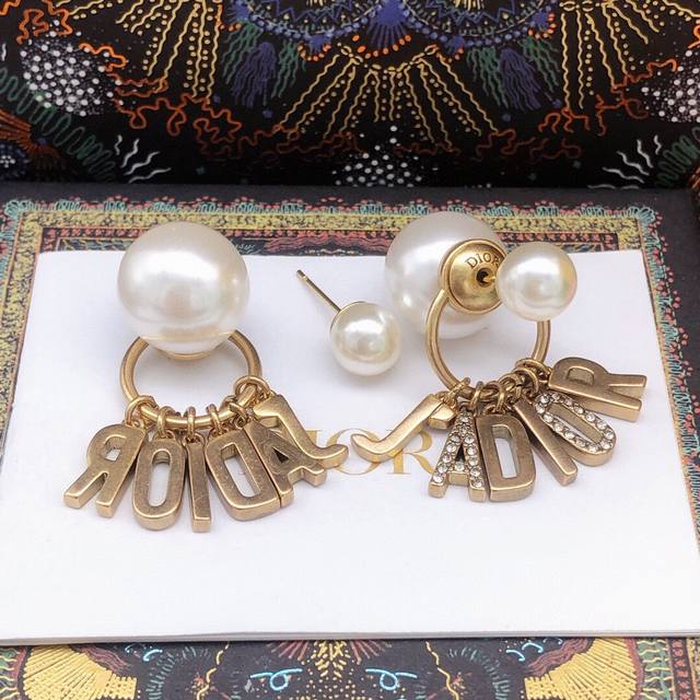 Dior Absolutely Hot Selling Size Pearl Antique Bronze CD Earrings - Same Material as Wholesale - S925 Silver Needles - Logo Clearly Visible - 1:1 Replica