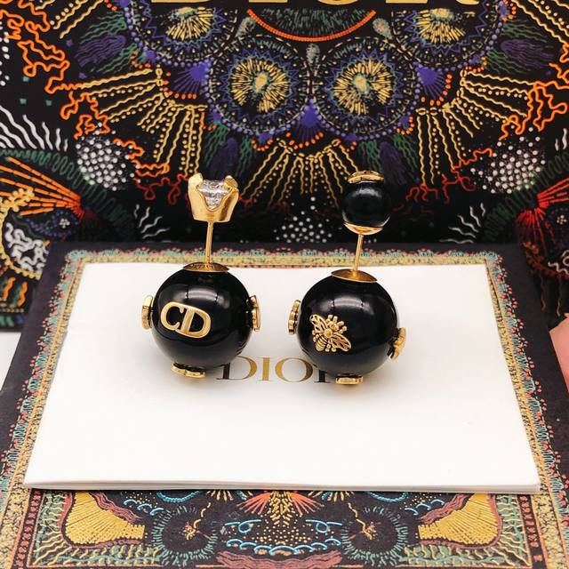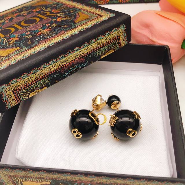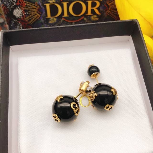 Item No. Ded0472 Dior Vintage Bee Black Pearl Stud Earrings Ddd