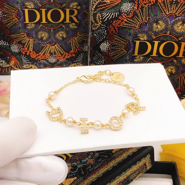 Dio* Latest Pearl Dior Letter Diamond Bracelet, identical to the Zp brass material