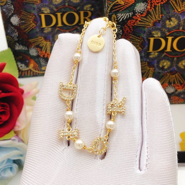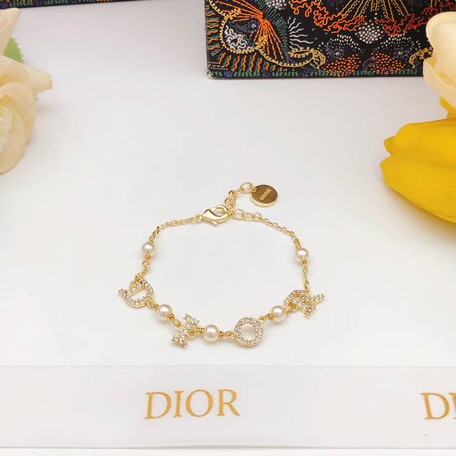 Item No. Dsl0121 Dio* Latest Pearl Dior Letter Diamond Bracelet, identical to th