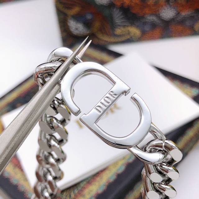 Item No. Dxl0131 Dior necklace with diamond-encrusted silver chain.