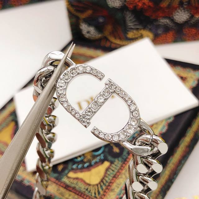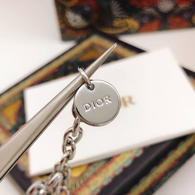 / Item No. Dxl0131 Dior necklace with diamond-encrusted silver chain.