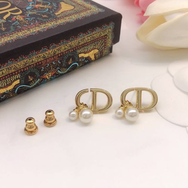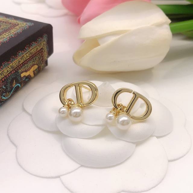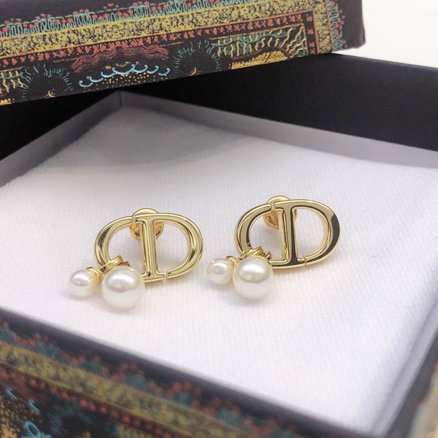 Dior original new pig nose CD pearl mini earrings. High-end quality, 1:1 counter mold, the same brass material as the counter original! High-grade 925 silver needle hypoallergenic treatment, CNC engraving, impeccable details, versatile and suitable for all face shapes, stylish and confident without being ostentatious, making it extremely charming. A must-have for goddesses.