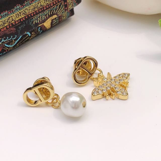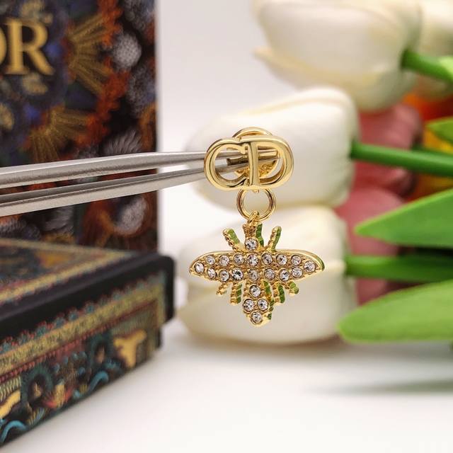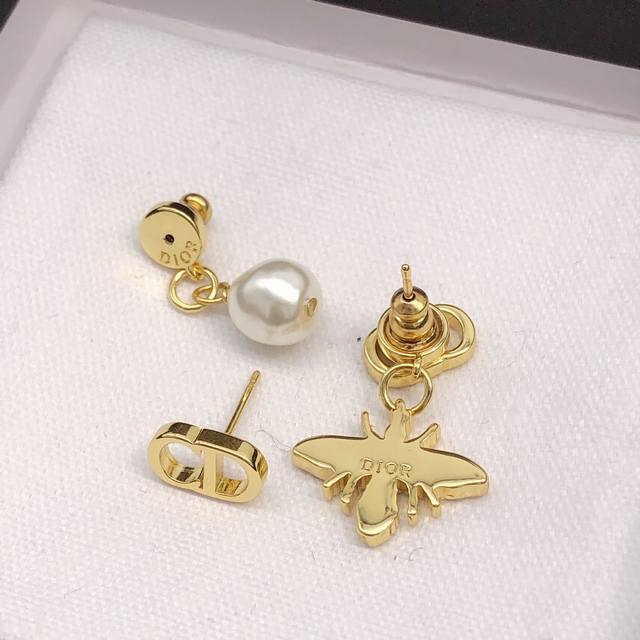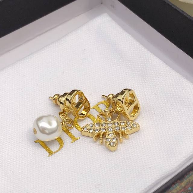 Dior original new Cd diamond pearl bee earrings. High-end quality, 1:1 counter mold, the same brass material as the counter original! High-grade 925 silver needle hypoallergenic treatment, CNC craftsmanship, impeccable details, versatile and suitable for all face shapes, stylish and confident without being ostentatious, making it extremely charming. A must-have for goddesses.