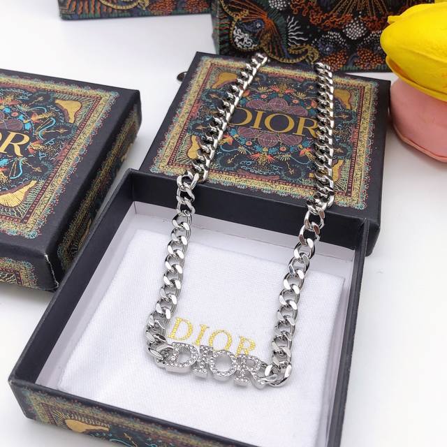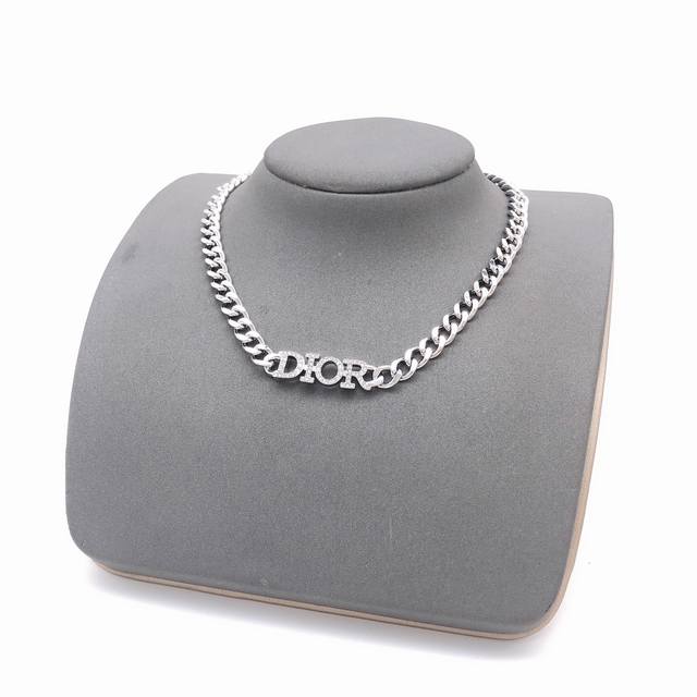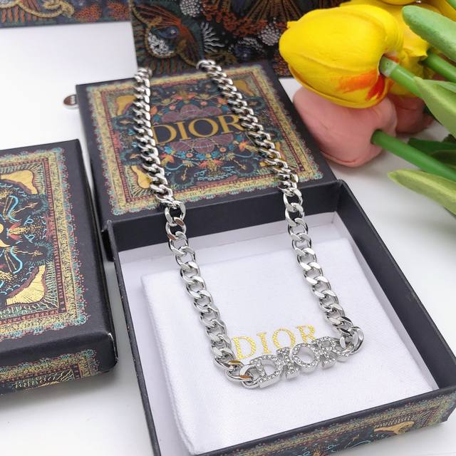 / No. Dxl0016 Dior new necklace silver letter inlaid with diamonds