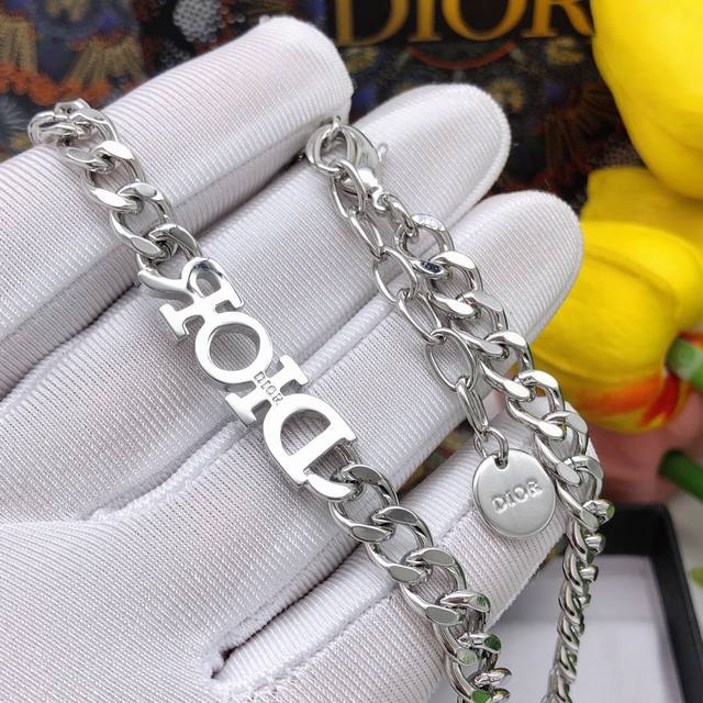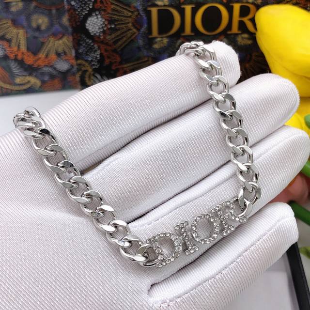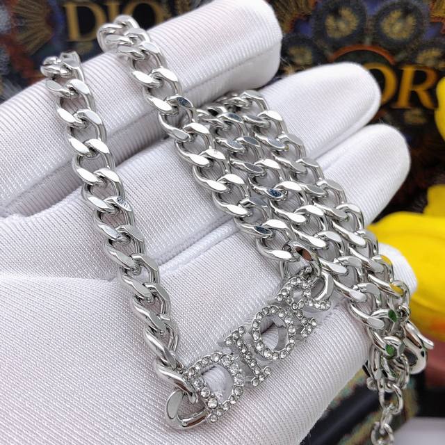Dior new necklace silver letter inlaid with diamonds