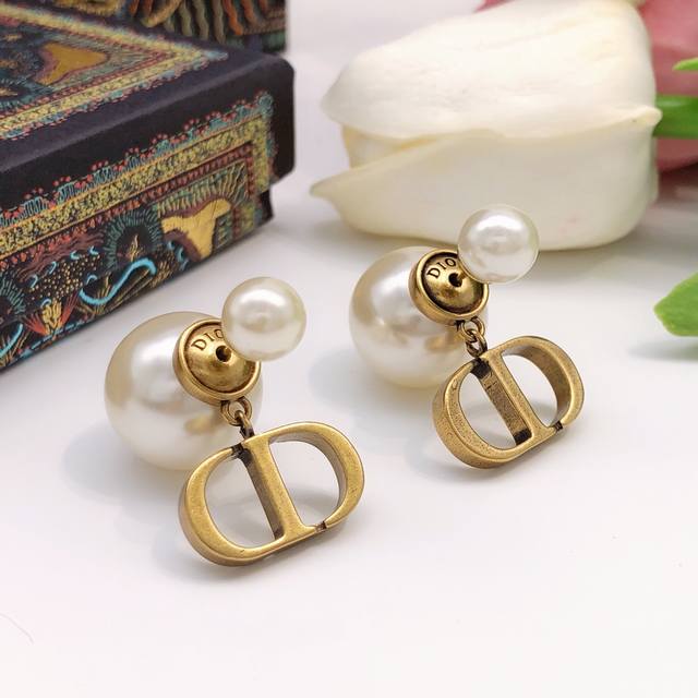 Dior earrings, size Cd, pearl earrings, best-selling model, the highest version on the market! 1:1 style mold, original version, Dior earrings, goddess must-have, super face-slimming