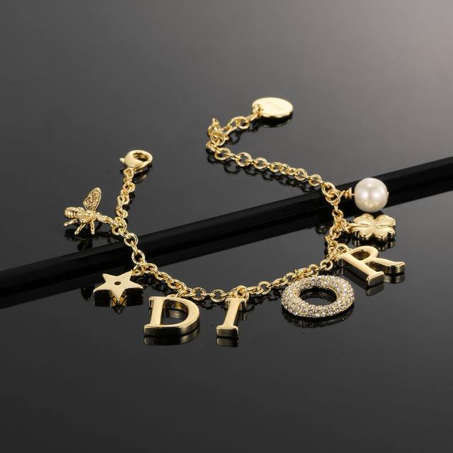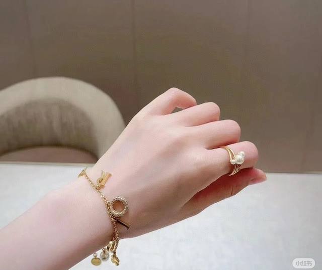 The Dior monogram bracelet, beloved by top brands, features Jadior. Dior's new creations feature strong metal lines, neutral tones, and a street-punk feel. The retro metallic texture and Dior monogram are trendy and perfect for modern street style and vacation wear, making them a hot summer trend.