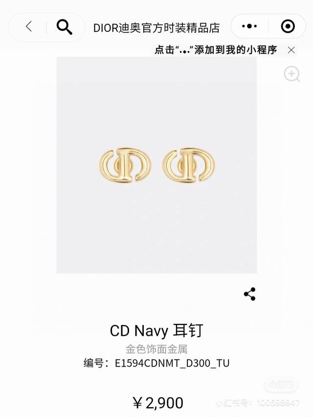 The latest Dior hot style that all internet celebrities like, the popular Dior series, CD letter simple earrings, the latest synchronized Dior earrings on the official website, S925 silver needle counter consistent material, no dead angle beauty! Earrings