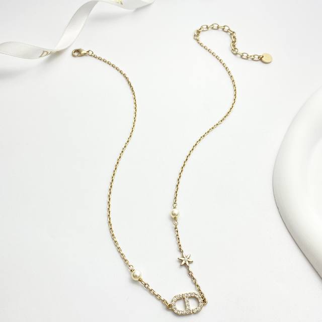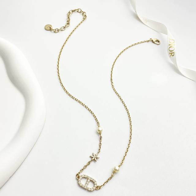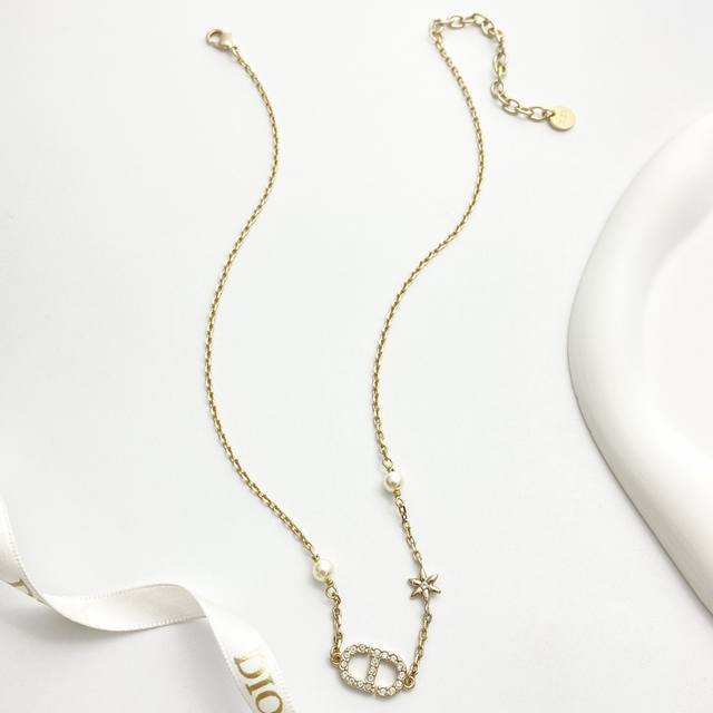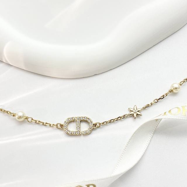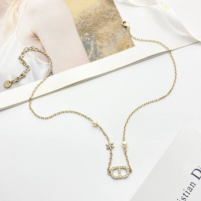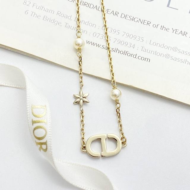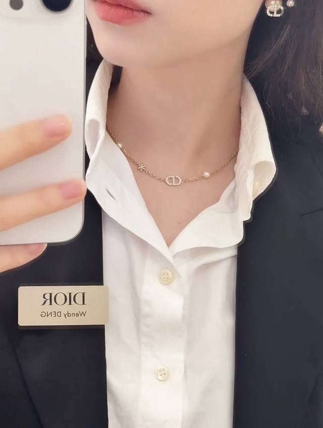 Today's New Arrival Code N1171 0257820 Dior Necklace Hot Selling Item DDD Dior Light Gold Full Diamond Cd Small Flower Pearl Necklace DDD The iconic full diamond Cd lettering paired with rhinestone flowers, adorned with small pearls on both sides~ It refracts delicate starlight under the light, sweet yet elegant, perfectly embodying a sophisticated feel~ DDD Exquisite and elegant! Perfect for everyday wear or dates DDD
