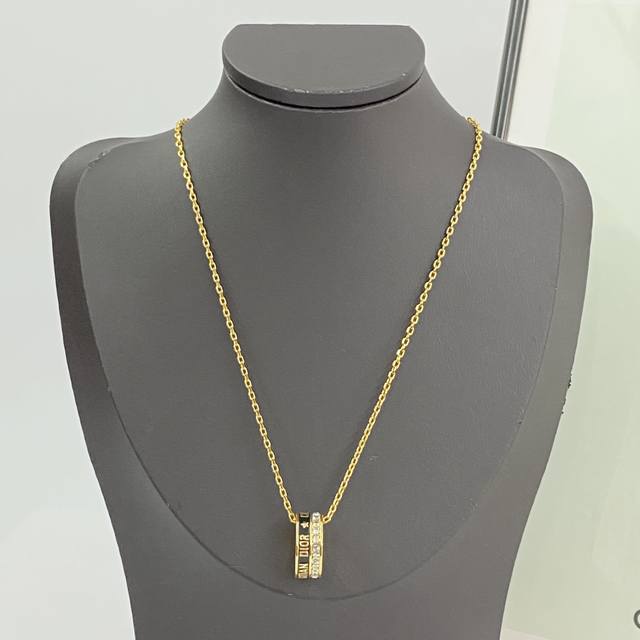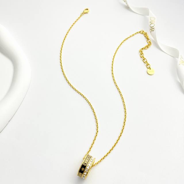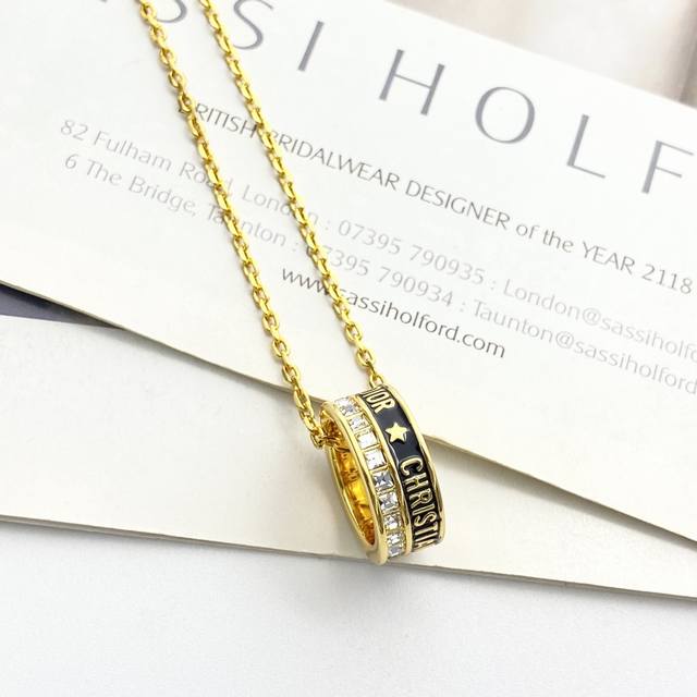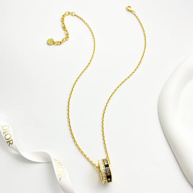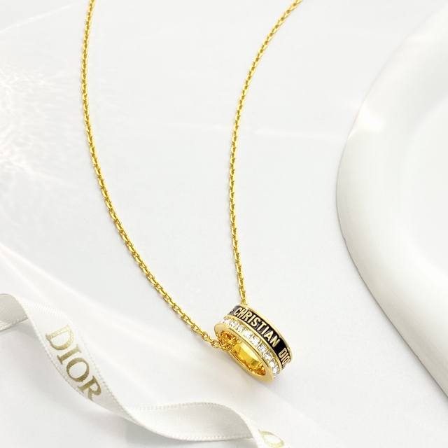 Today's New Arrival Code N1181 0952845 DDD Dior Necklace Hot Selling Item! DDD Dior 2026 New Enamel Gold Letter Diamond Ring Necklace DDD The delicate chain is meticulously crafted from gold-plated metal, highlighting the white crystal-encrusted ring band, which is adorned with the Christian Dior logo in black enamel. DDD It sparkles in the sunlight! The black and gold color scheme is mysterious and sophisticated DDD It exudes a high-class feel when worn, and paired with a satin dress, it instantly creates a haute couture runway star effect~ DDD