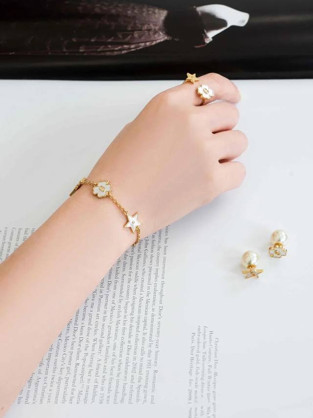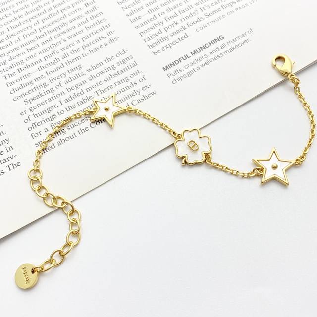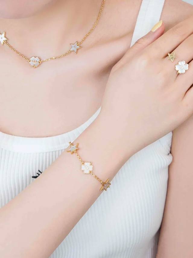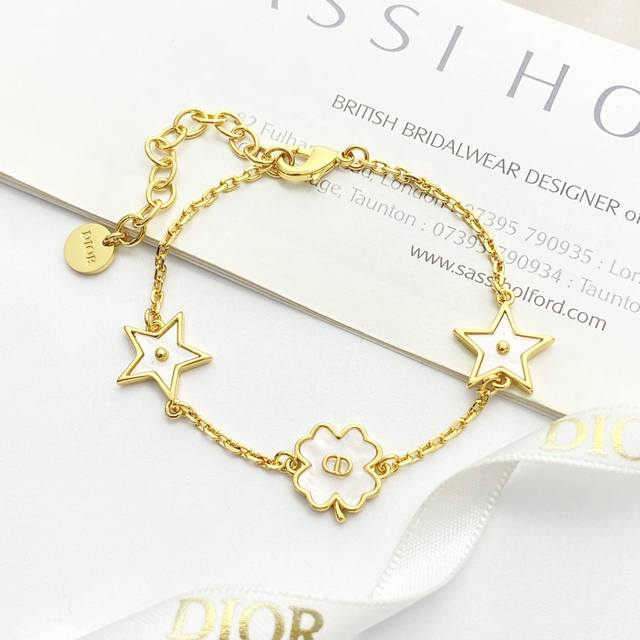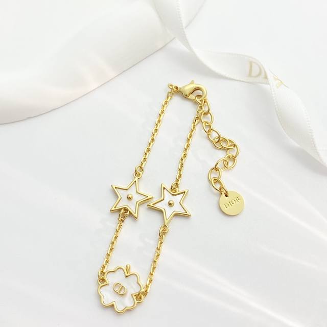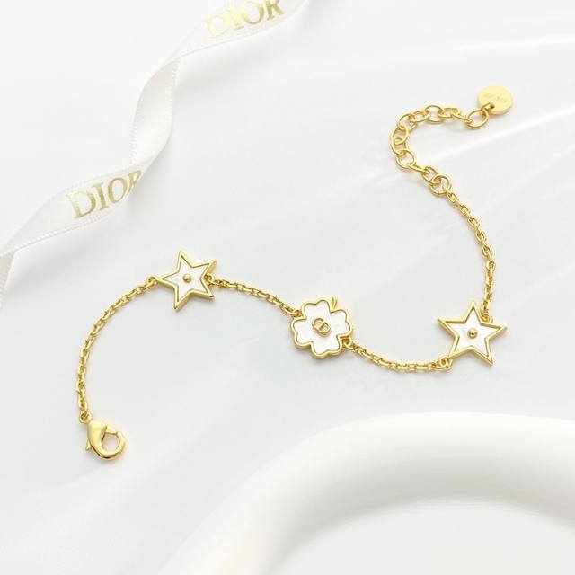 Dior white mother-of-pearl four-leaf clover star bracelet