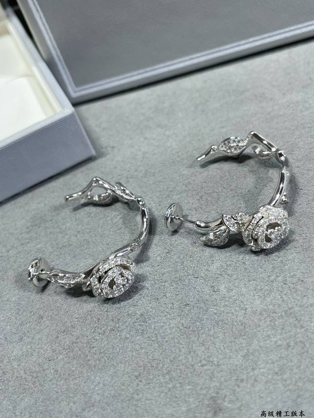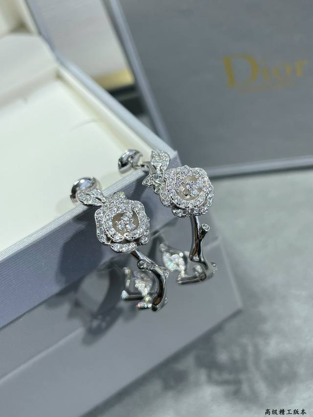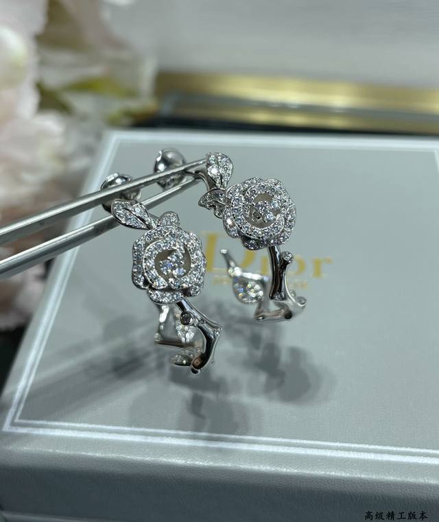 V gold-plated Dior rose earrings, from the Dior High Jewelry Rose Dior Bagatelle collection. Named after the Parisian rose garden, the exquisite Rose Dior Bagatelle collection meticulously depicts blooming roses, embodying timeless elegance. Each piece is crafted with meticulous jewellery craftsmanship, showcasing Dior's exceptional craftsmanship.