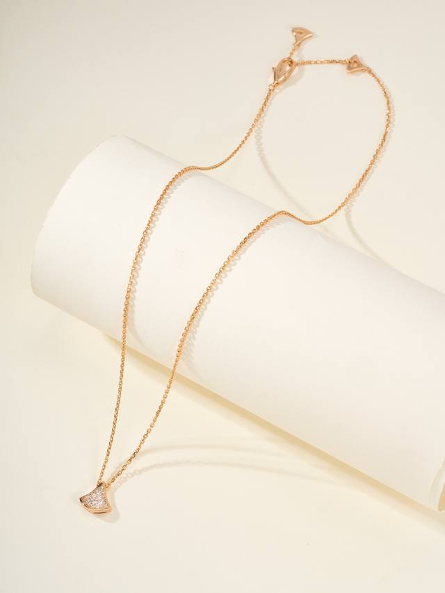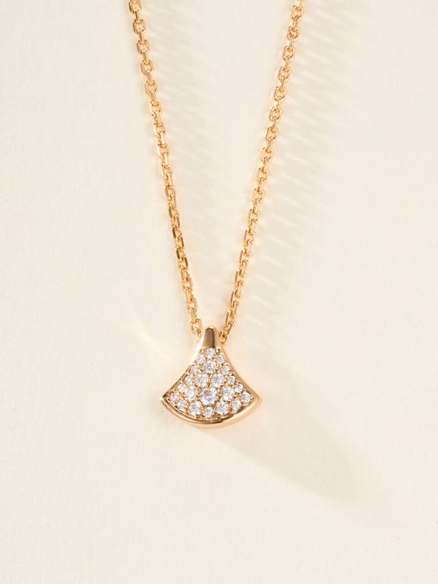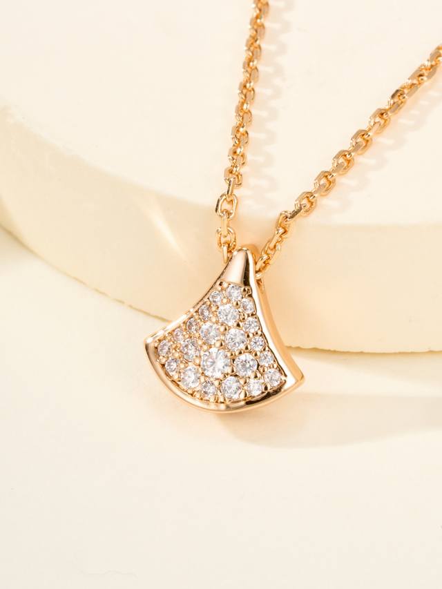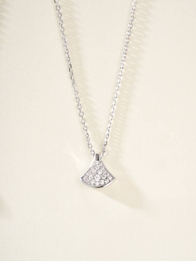 Divas'Dream series full diamond necklace, with a delicate and warm touch, not only exudes nobility and elegance but is also very fashionable and versatile. This necklace uses a fan as its design element, with smooth and elegant lines, giving it a graceful feel. The diamond embellishments add a touch of brilliance, making this necklace sparkle brilliantly in the light.