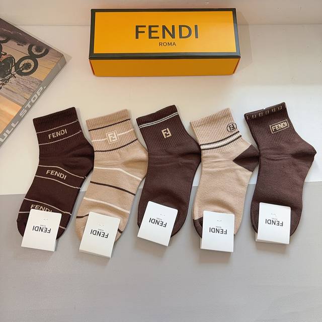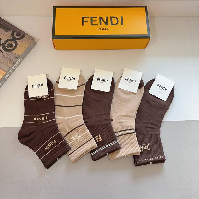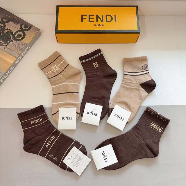 Box of 5 pairs (including packaging) of Fendi classic mid-calf socks with the double F logo. Practical, comfortable, soft, breathable, stylish, and versatile.