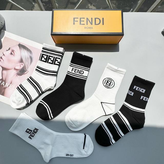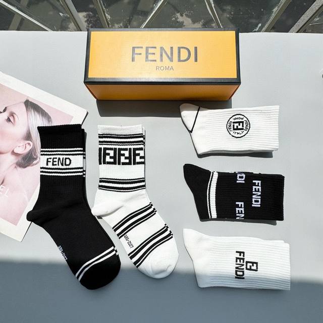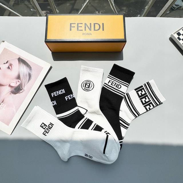 comes with a box of five pairs of Fendi's new high socks with the classic double F logo. Made of pure cotton, breathable and comfortable. Super nice and popular small item. A must-have for fashionistas, easy to match.