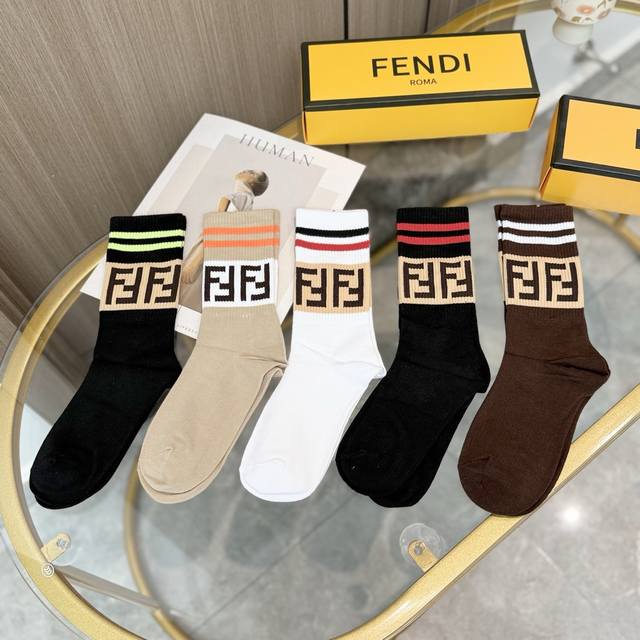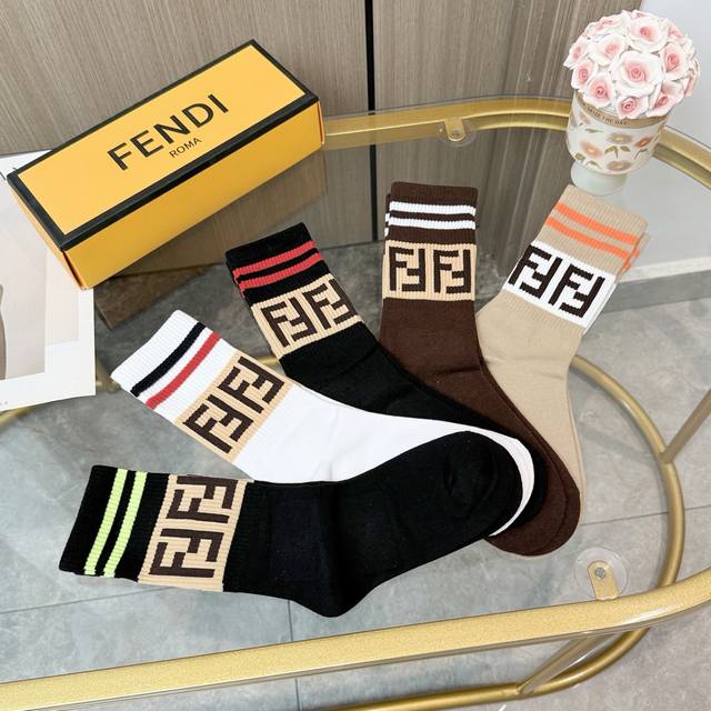 comes with a box of five pairs of Fendi's new high socks with the classic double F logo. Made of pure cotton, breathable and comfortable. Super nice and popular small item. A must-have for fashionistas, easy to match.