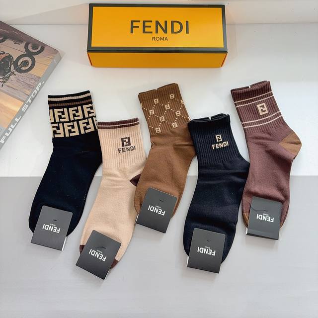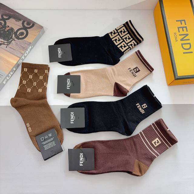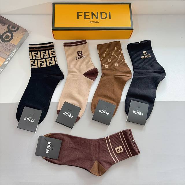Fendi new mid-calf men's socks, pure cotton fabric, a must-have for fashionistas, classic double F, personalized fashion and versatile style, you deserve it