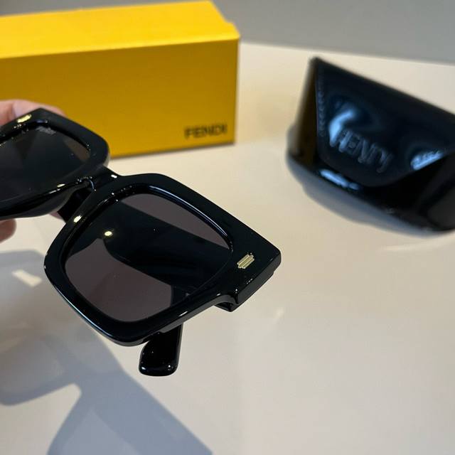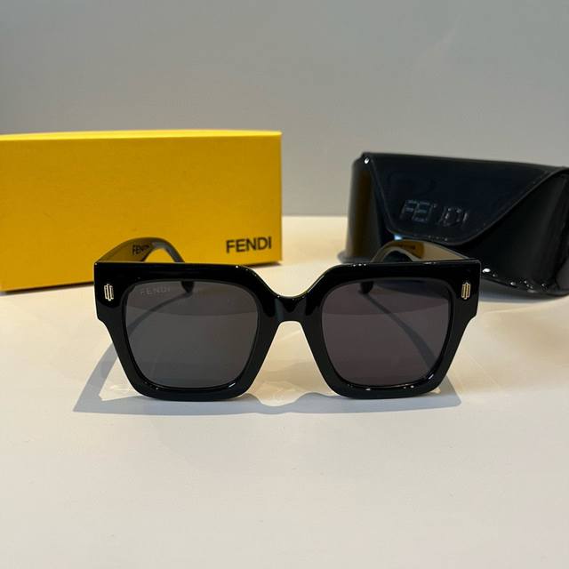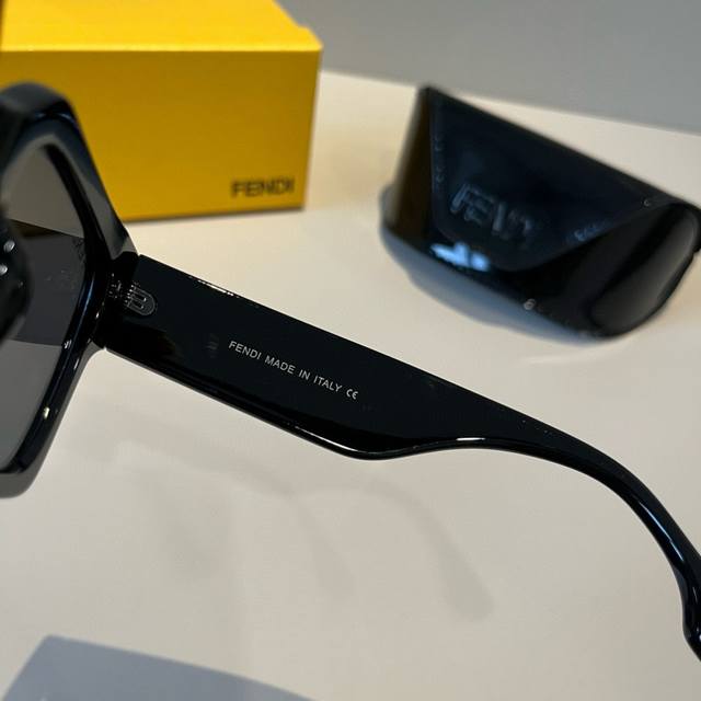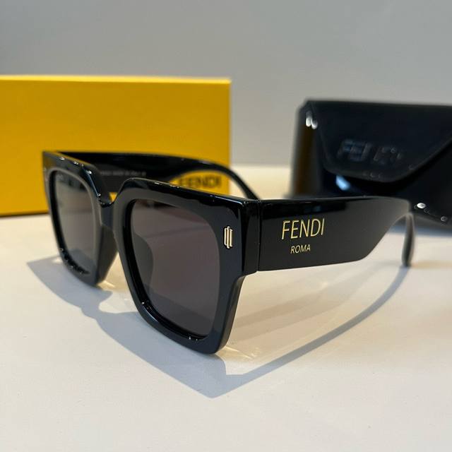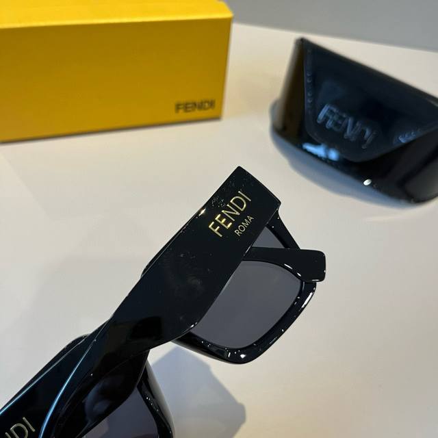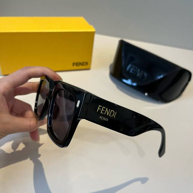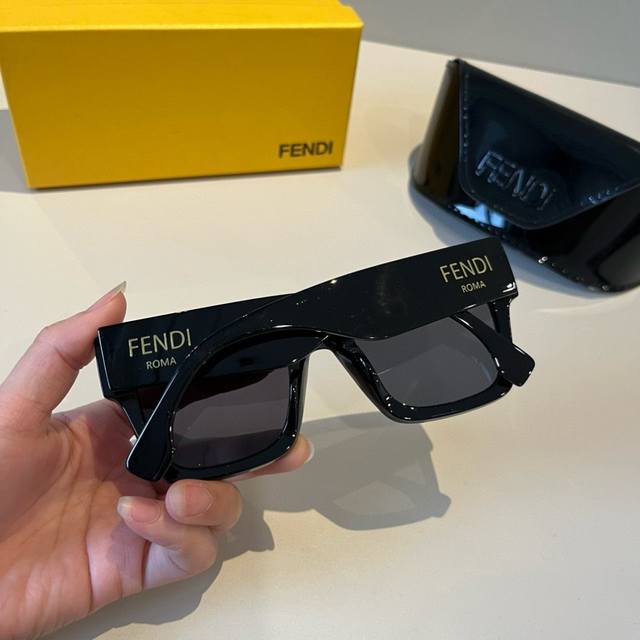 D Fendi's new sunglasses are here! Fendi Roma Fe40101F, an Asia exclusive model, features a larger bezel that perfectly flatters the face shape. Four colors offer different hues for each season. This Fendi style features an all-over F monogram print, with two-tone electroplated studs in gold and silver. The side features the Fendi Roma logo. The transparent temples contain inserts and are also entirely covered with the letter F.