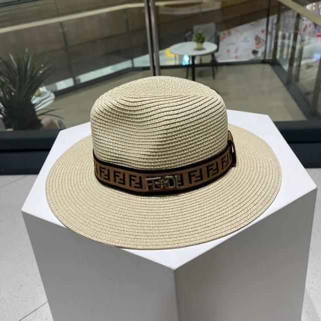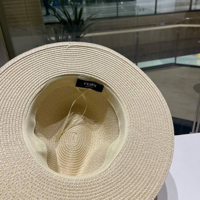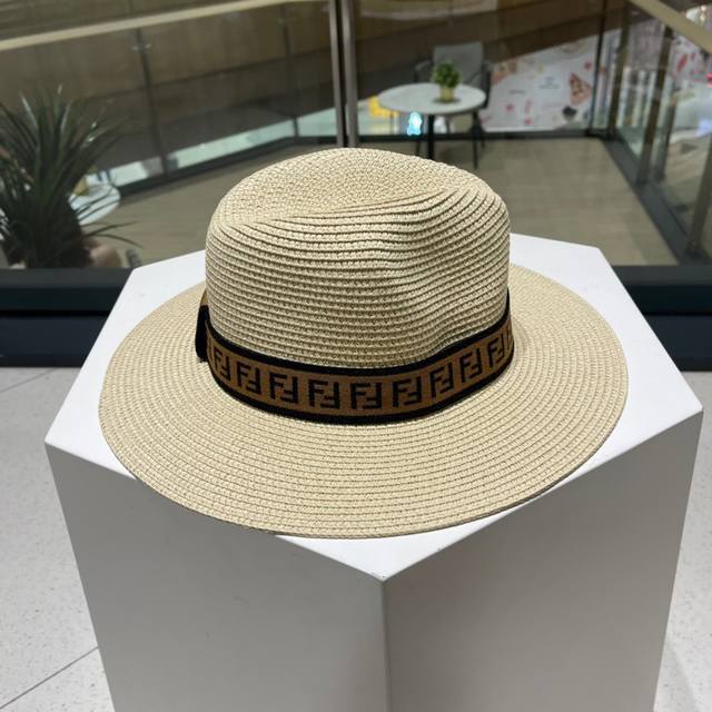 Fd Fendi's new straw hat, made of raffia, with monogram Ff fabric, a must-have for celebrities, head circumference 57cm