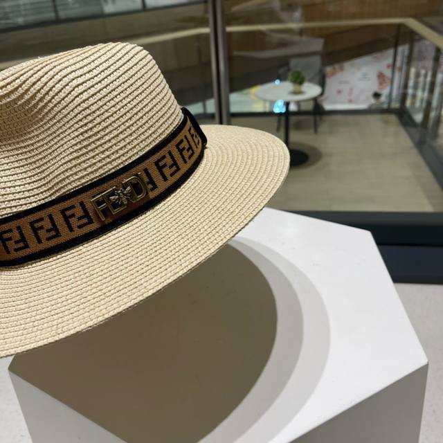 Fd Fendi's new straw hat, made of raffia, with monogram Ff fabric, a must-have f