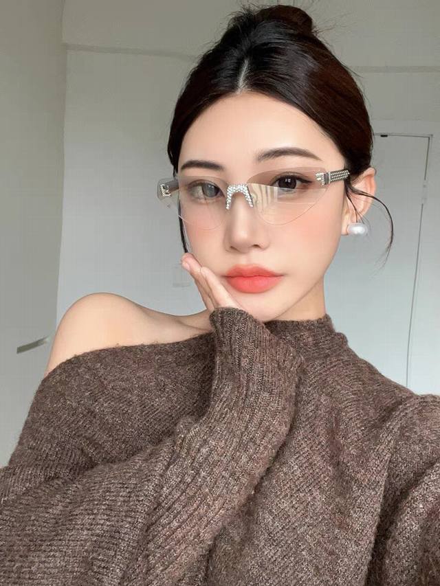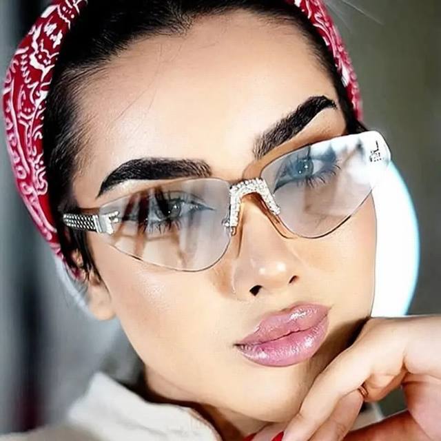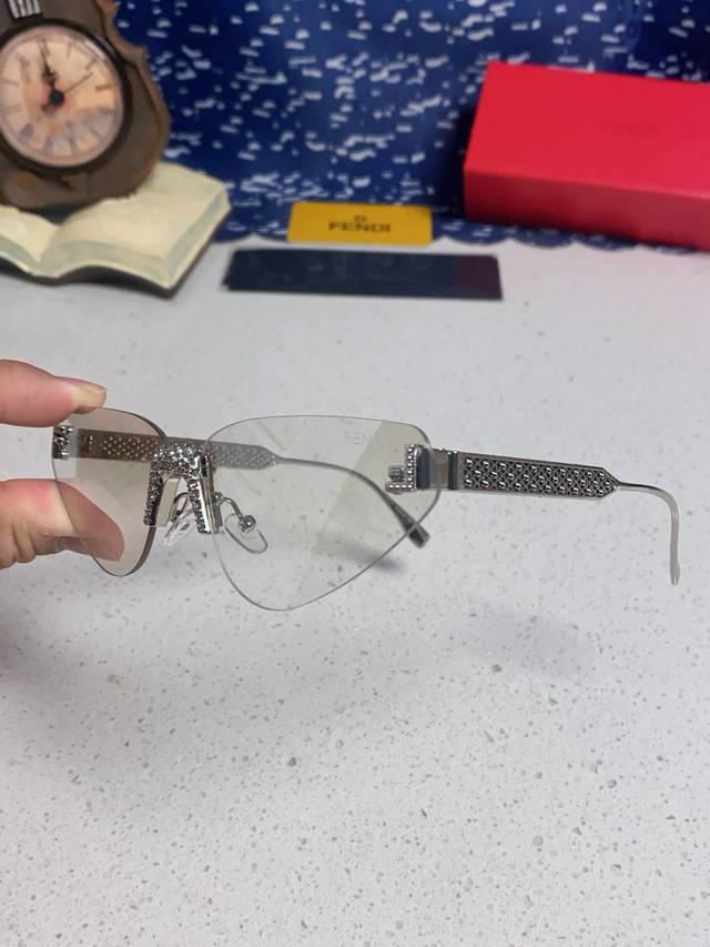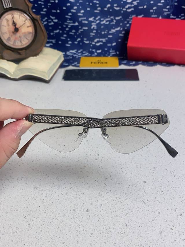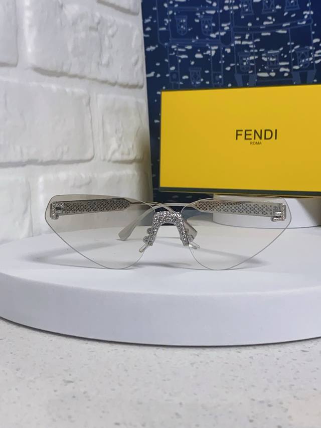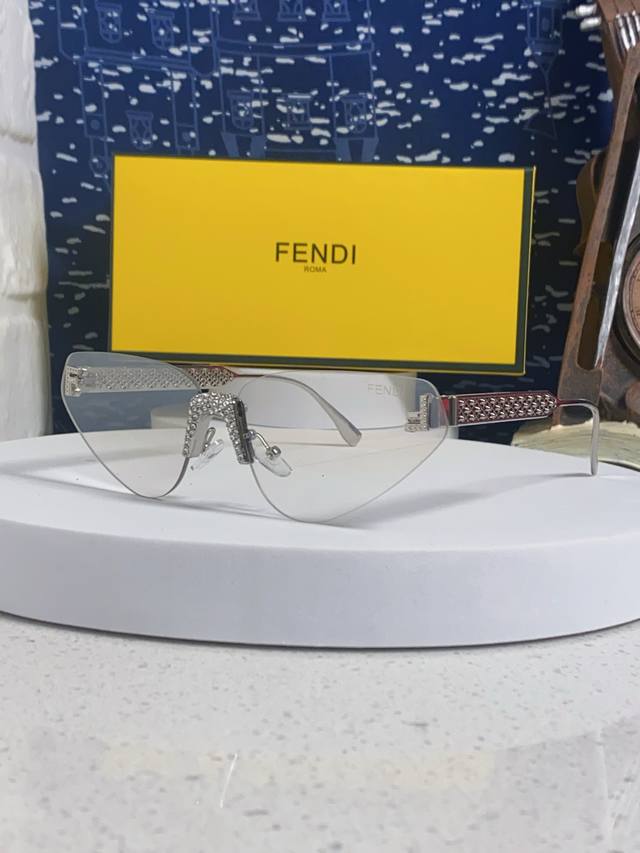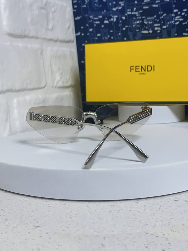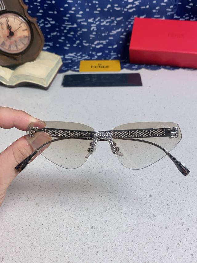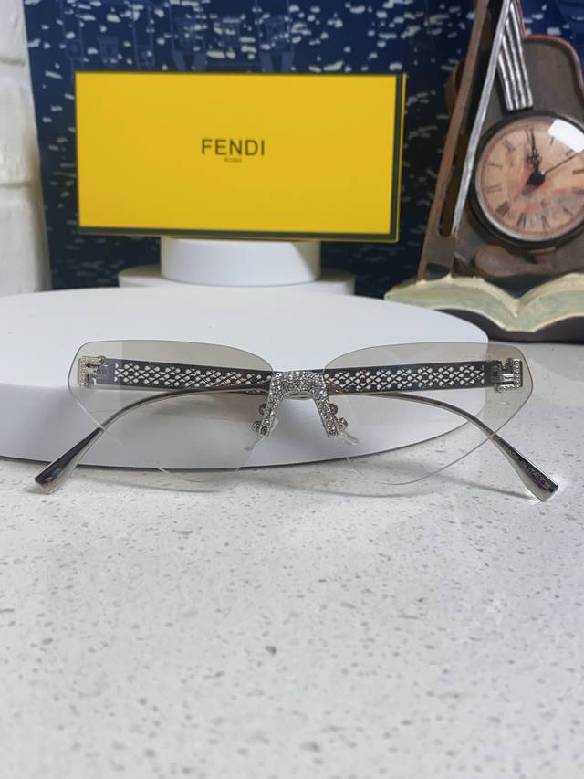 / Fendi 2025 New Letter F Diamond-Studded Frameless Cat-Eye Sunglasses Retro Europ