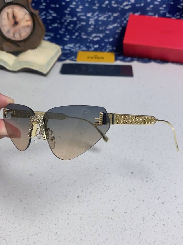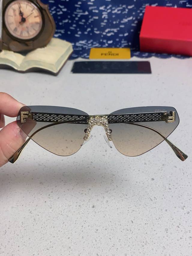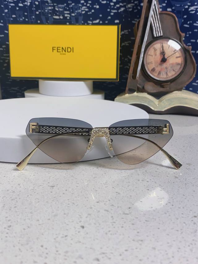 / Fendi 2025 New Letter F Rhinestone-Studded Frameless Cat-Eye Sunglasses Retro Eu