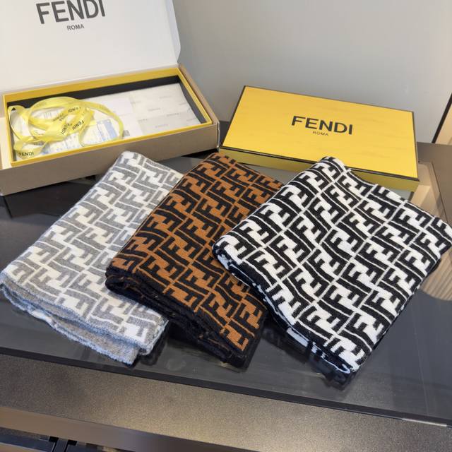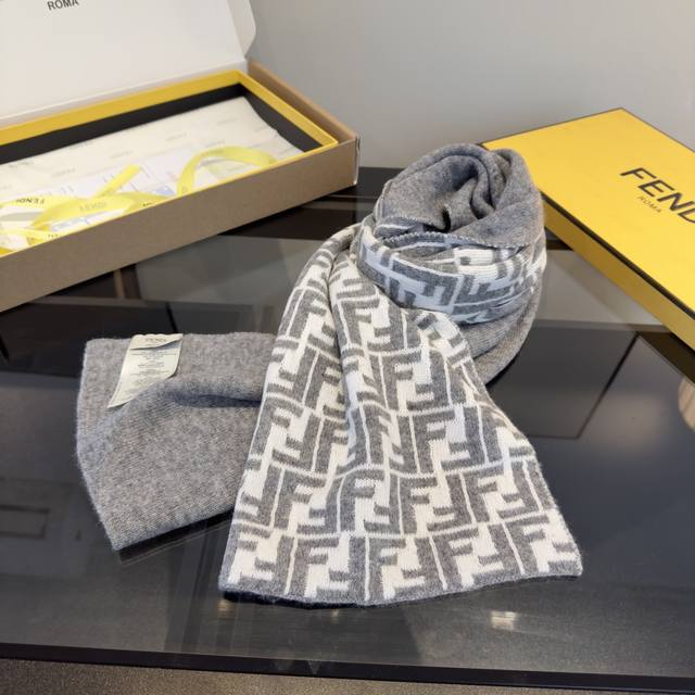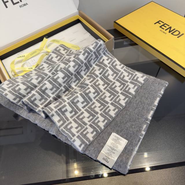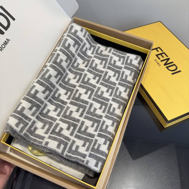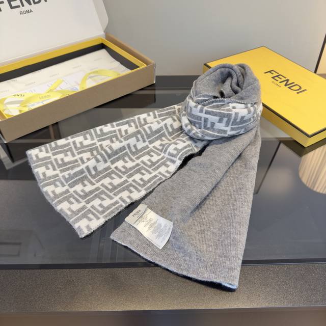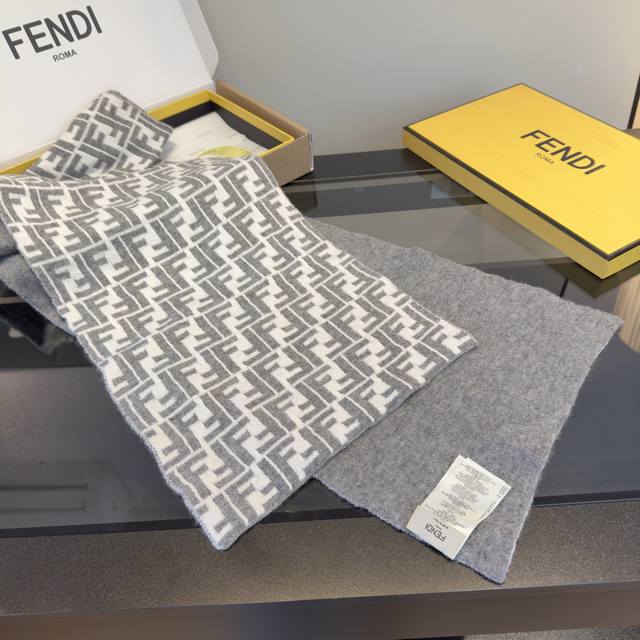 Fendi - A must-have for those who love unique and unconventional styles! Perfect for a chic winter! Extremely understated yet luxurious, with a sophisticated and minimalist design. A must-have for high-fashionistas, it exudes extraordinary elegance when worn! It radiates a unique and sophisticated aura, a truly high-class look! Size: 30*180cm cashmere/wool long scarf ~ two colors.
