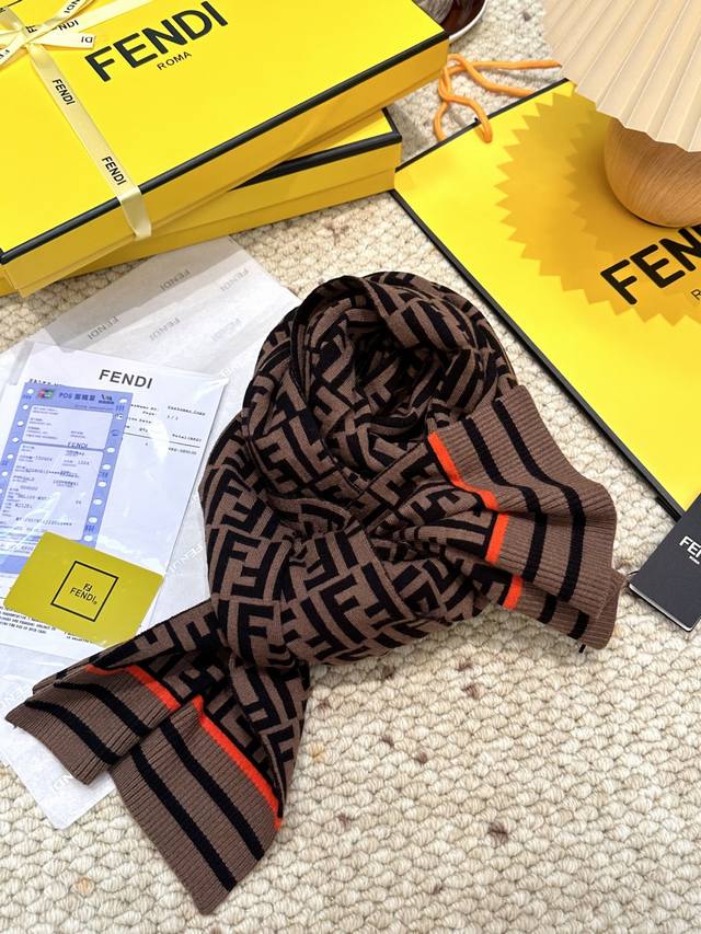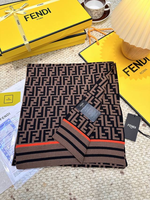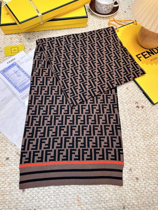 Fendi Classic Ff Knitted Long Scarf. A must-have for those who love unique and less common Fendi pieces! Stylish for winter!! Extremely understated luxury, exquisite and sophisticated minimalist design. A must-have for high-fashionistas. Wearing it truly exudes extraordinary elegance. From Fendi, a brand every woman loves~ It's absolutely stunning!! It possesses an innate high-class aura, Fendi's unique sophisticated elegance, a truly "high-level" choice! The knitted cashmere and wool yarn is thick, warm, and comfortable!! Truly admirable, it has a very high-end brand presence, full of charisma, gentle and intellectual.