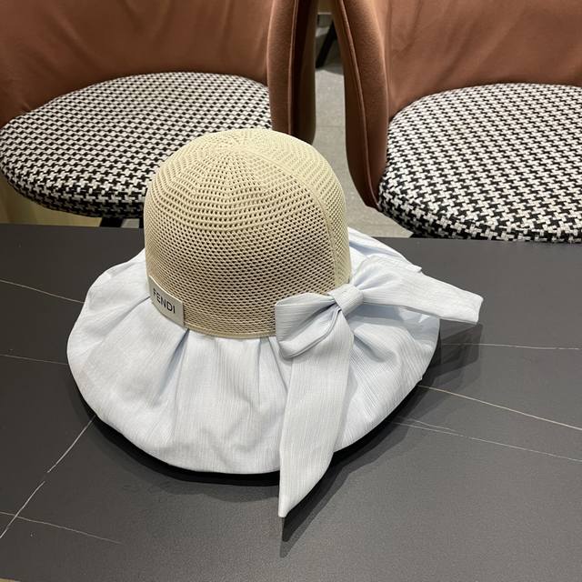 Fendi Fendi hat women's summer face-covering black pepper sunscreen large brim fisherman hat bow hollow sun hat UV basin hat